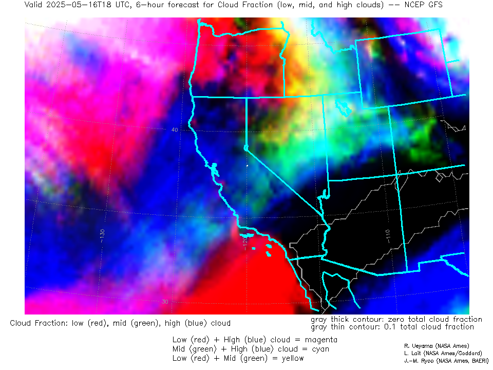 NCEP GFS Forecast Low-, Mid- and High-level Cloud Fraction