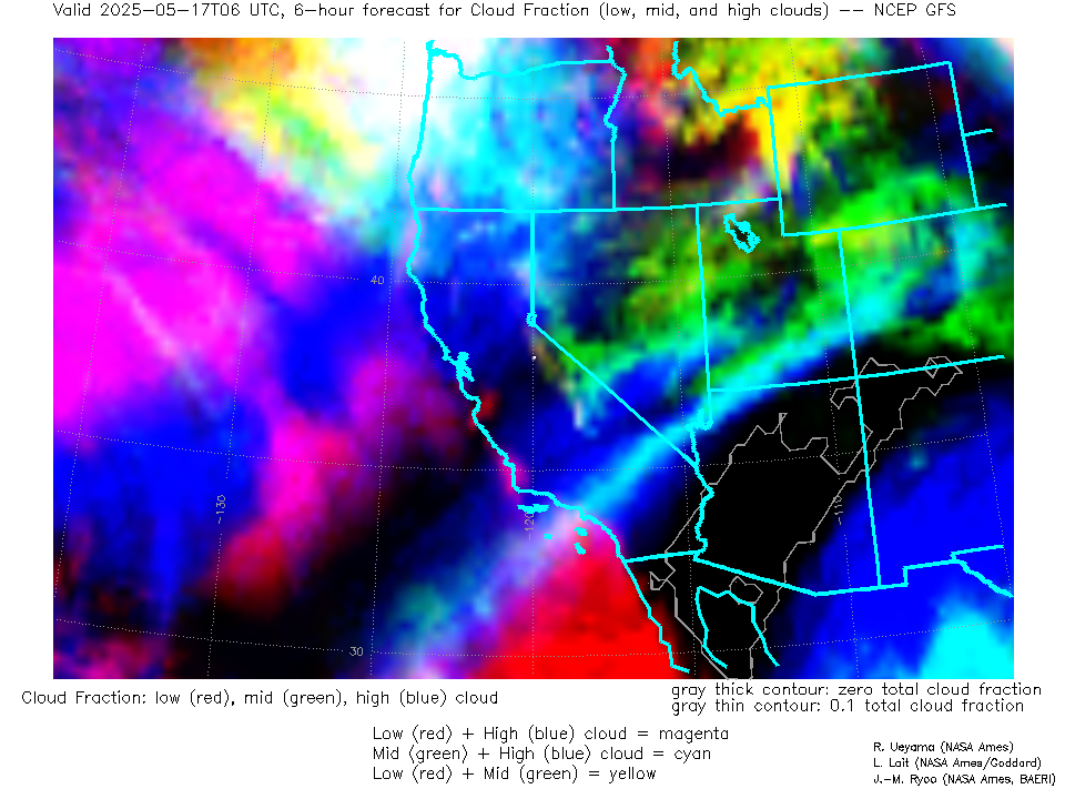 NCEP GFS Forecast Low-, Mid- and High-level Cloud Fraction