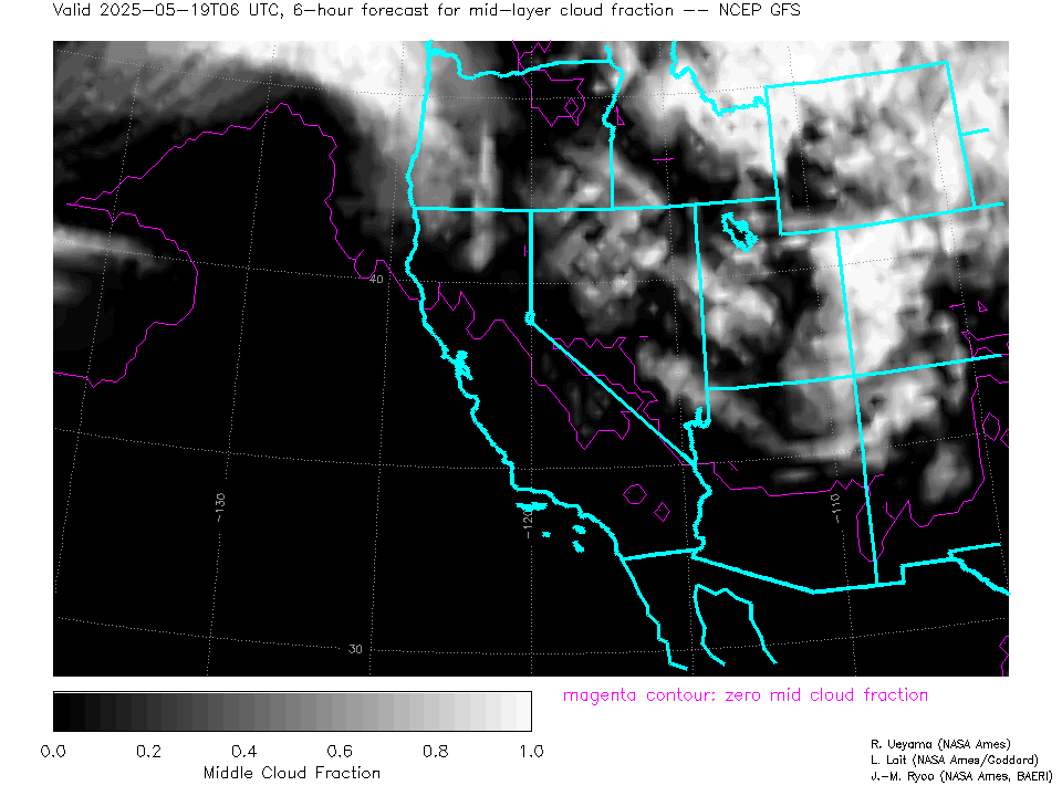 NCEP GFS Forecast Mid-level Cloud Fraction