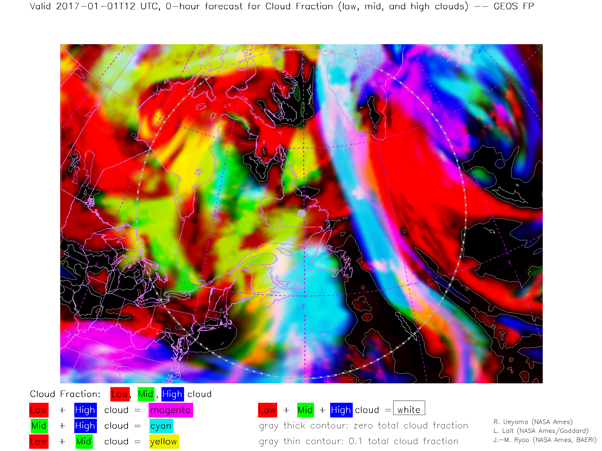 GEOS Forecast Low-, Mid- and High-level Cloud Fraction
