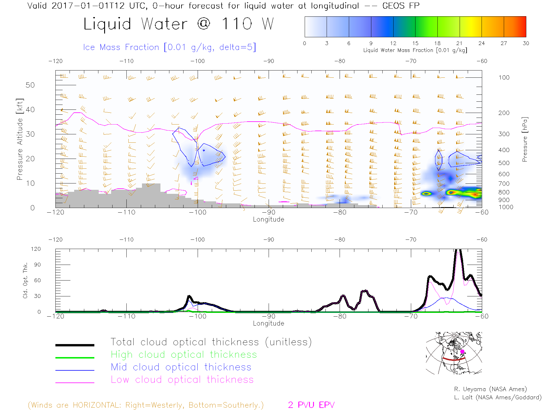 GEOS Forecast Cloud Water Content X-Section (40 N)