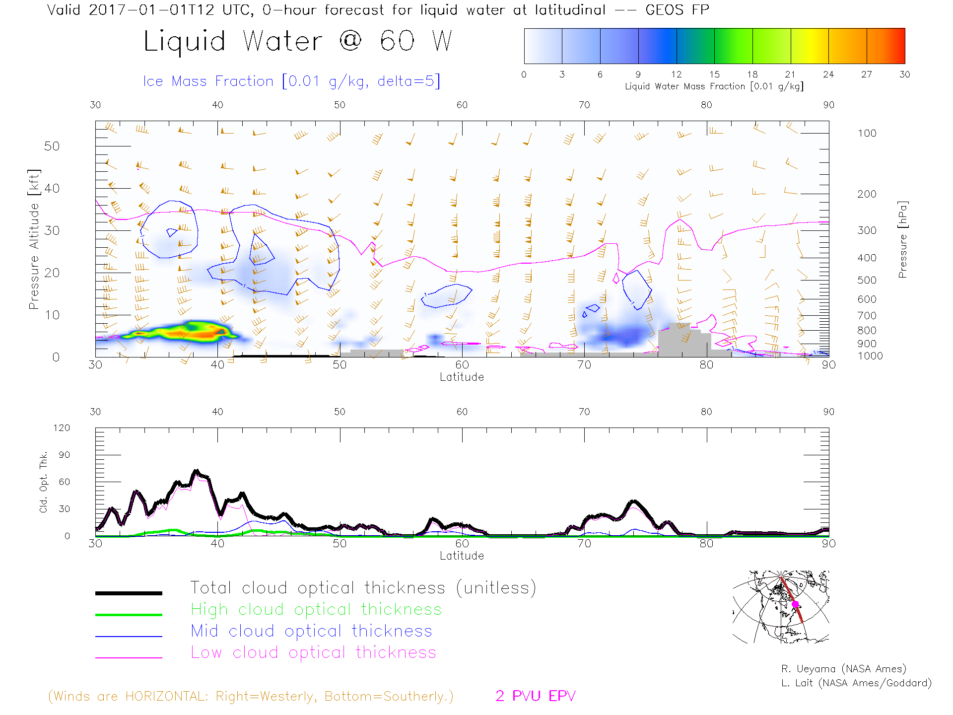 GEOS Forecast Cloud Water Content X-Section (60 W)