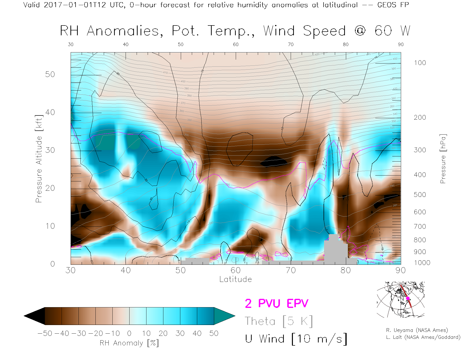GEOS Forecast Rel. Hum. X-Section (60 W)