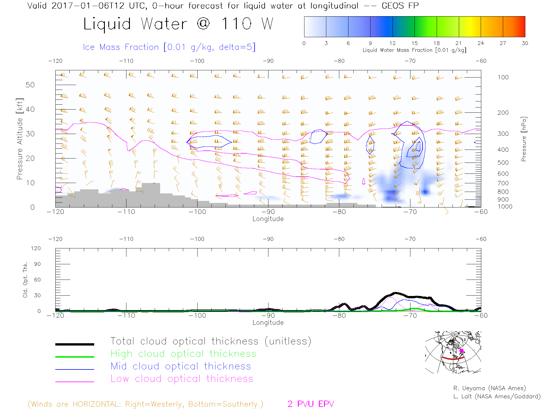 GEOS Forecast Cloud Water Content X-Section (40 N)
