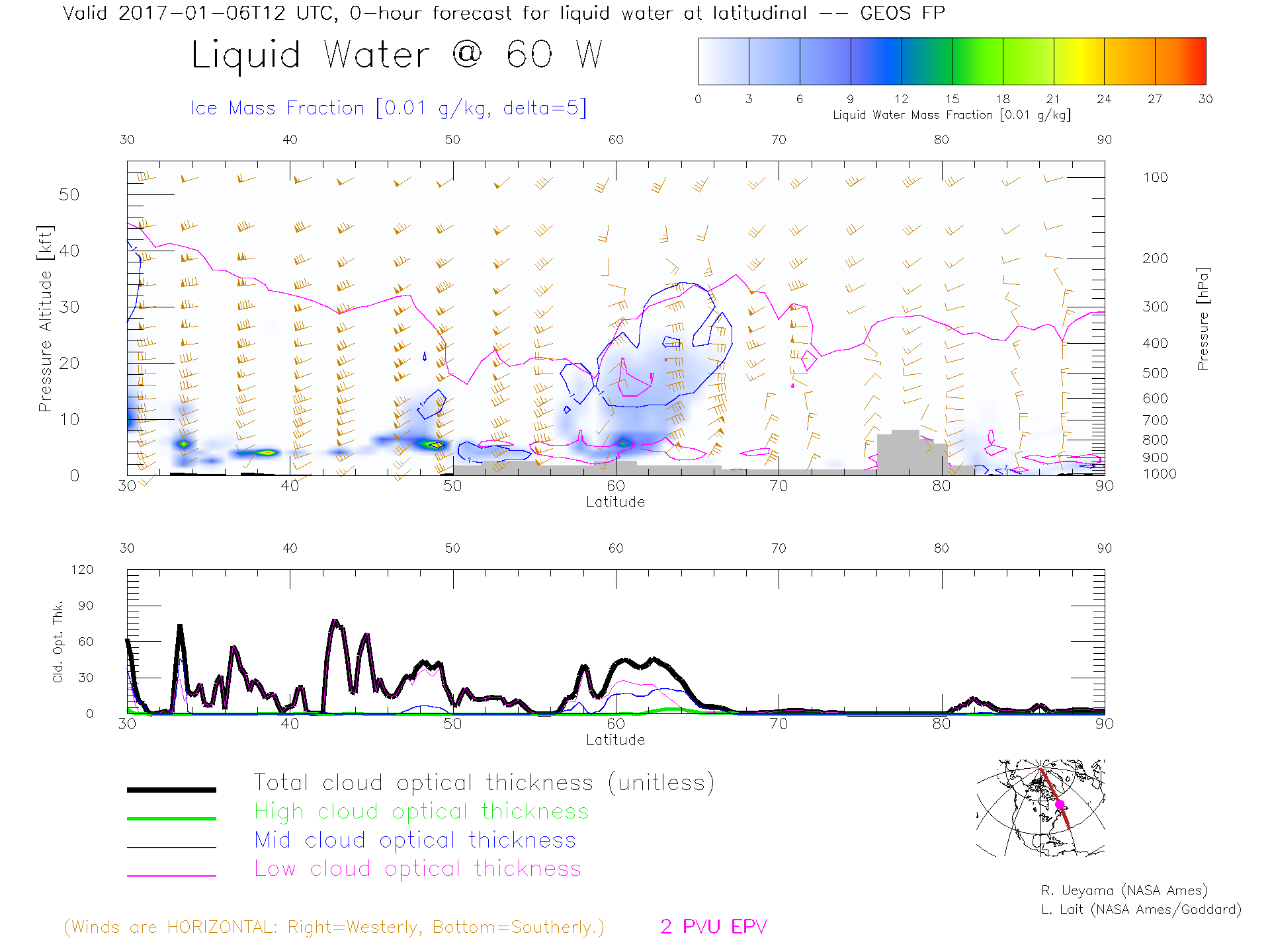 GEOS Forecast Cloud Water Content X-Section (60 W)