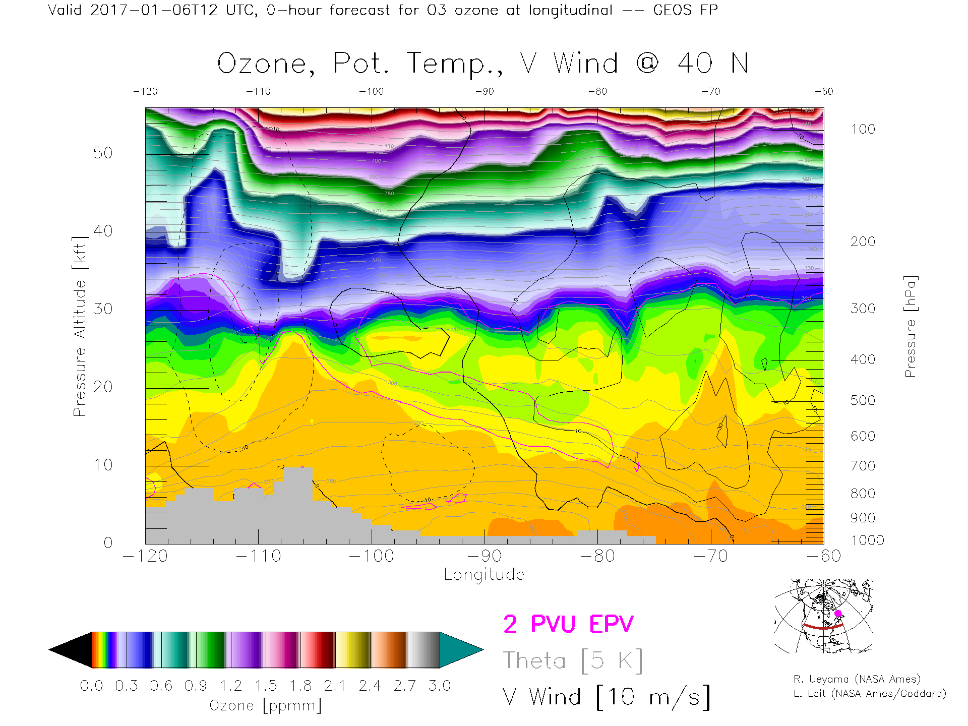 GEOS Forecast Ozone X-Section (40 N)