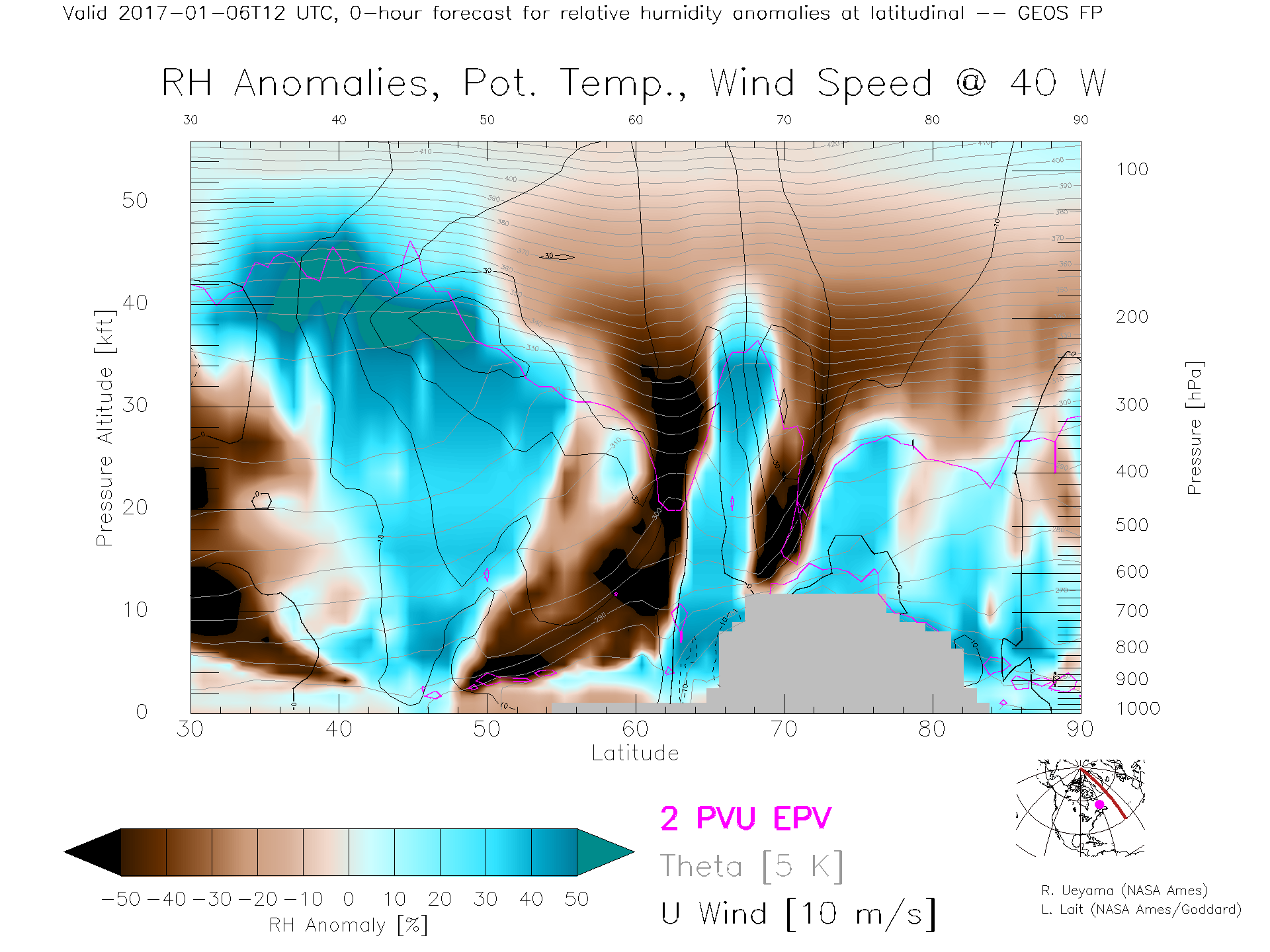GEOS Forecast Rel. Hum. X-Section (40 W)