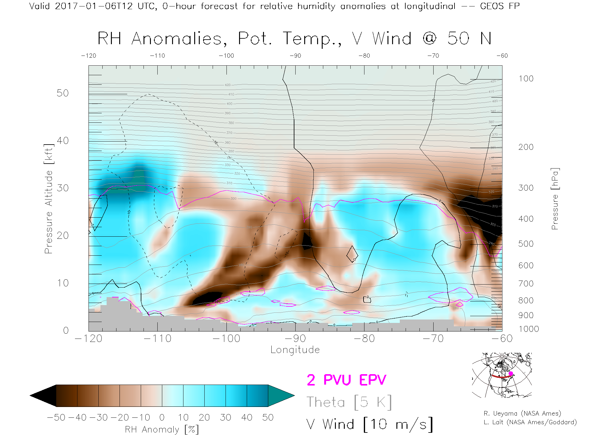GEOS Forecast Rel. Hum. X-Section (50 N)