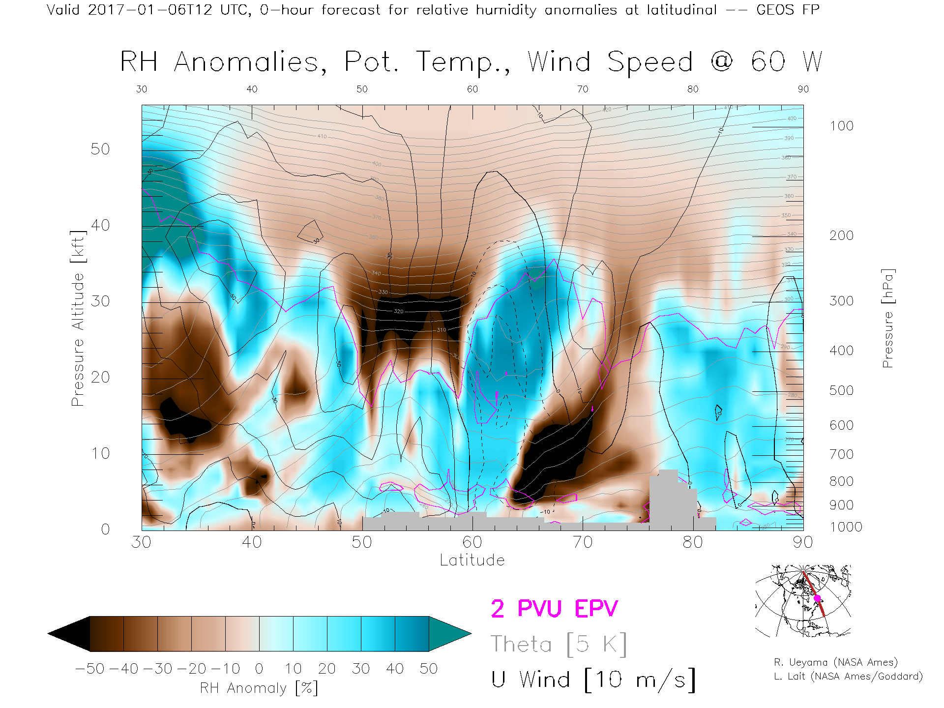 GEOS Forecast Rel. Hum. X-Section (60 W)