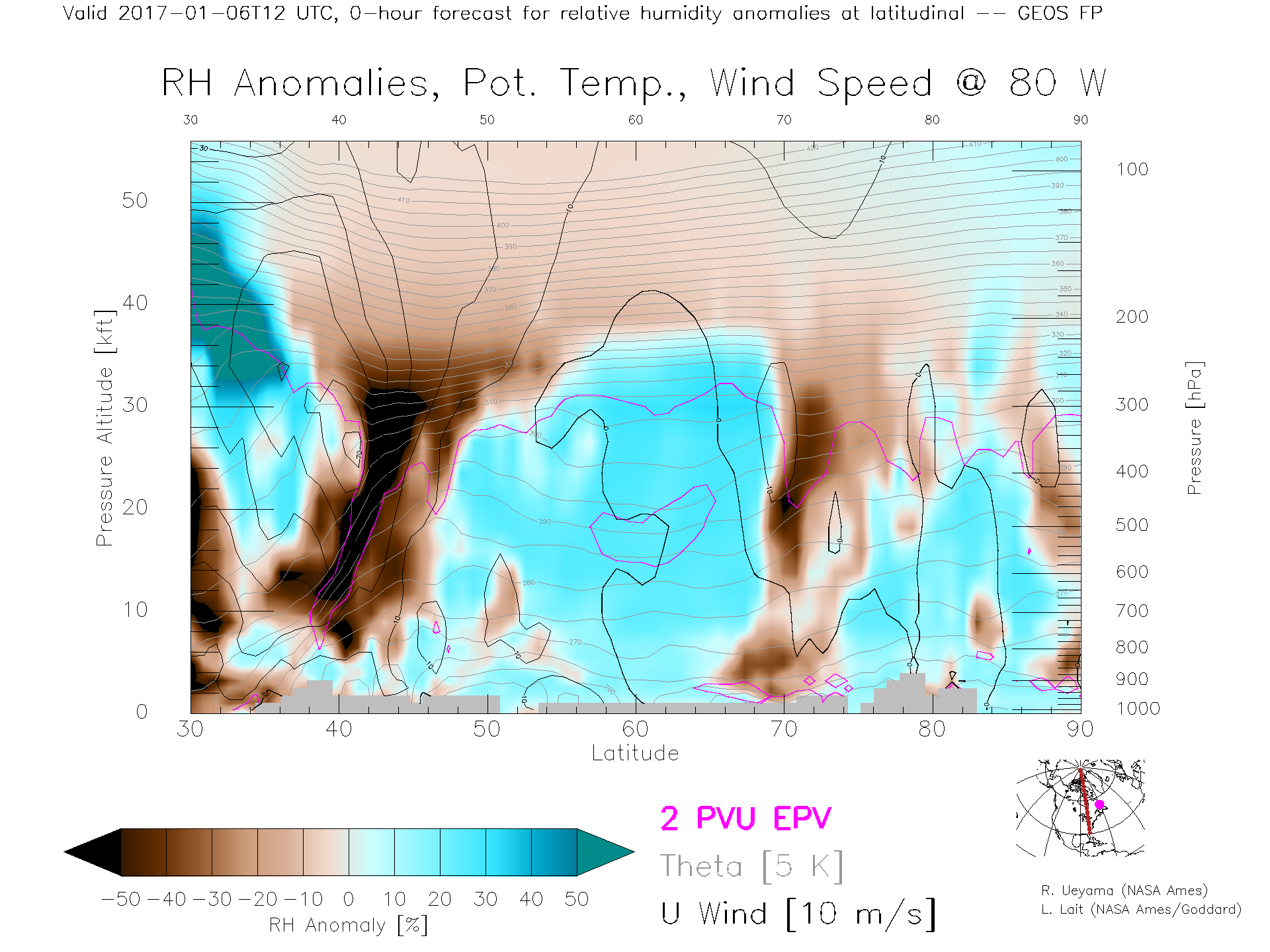 GEOS Forecast Rel. Hum. X-Section (80 W)