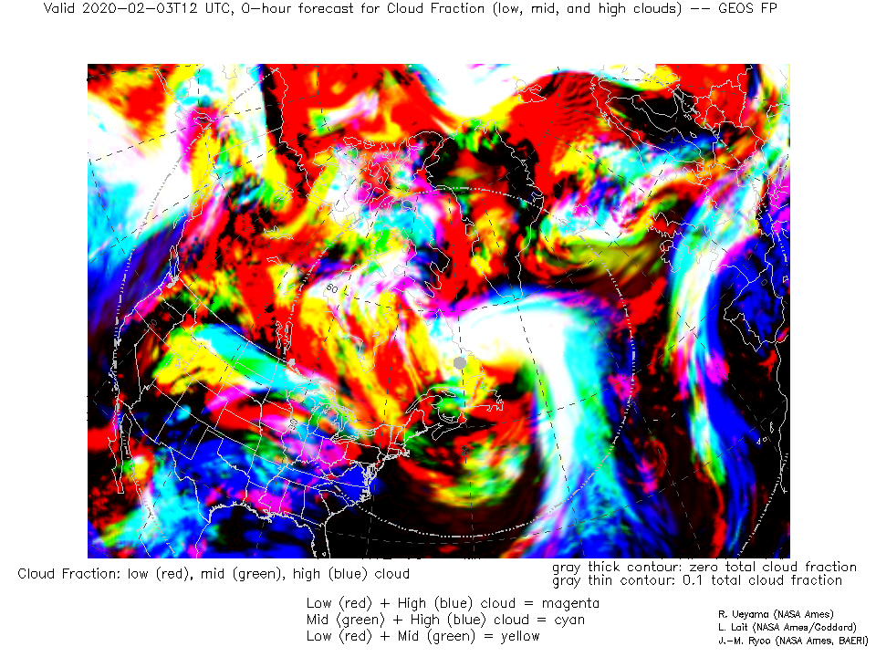 GEOS Forecast Low-, Mid- and High-level Cloud Fraction