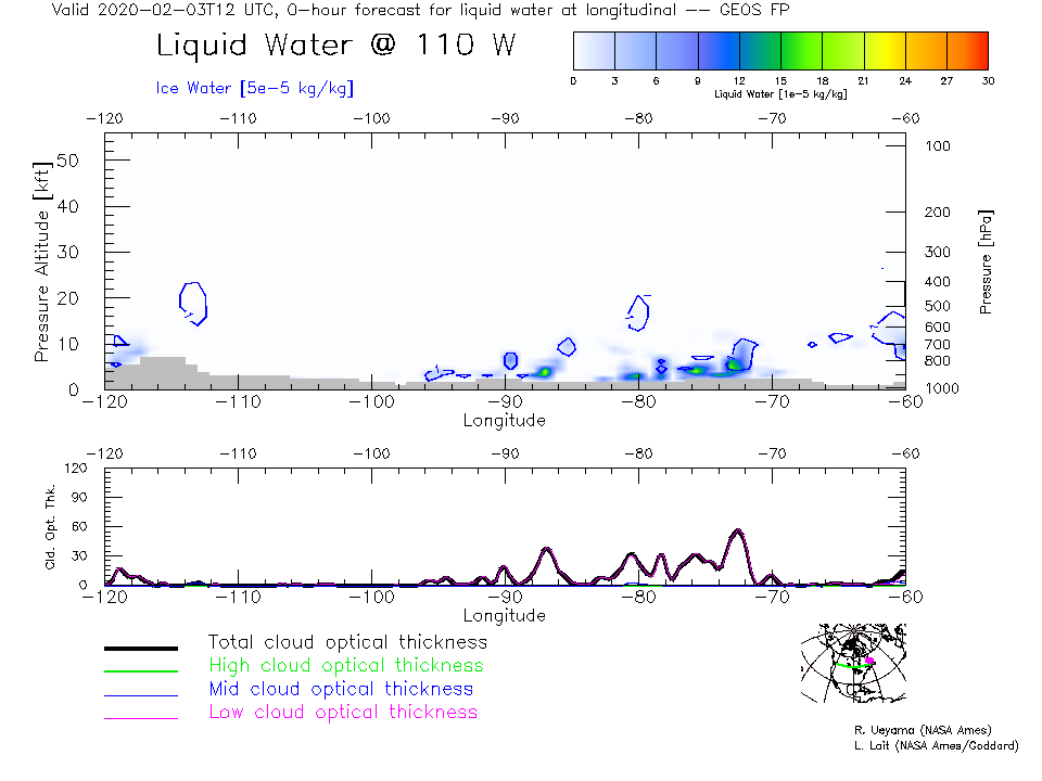 GEOS Forecast Cloud Water Content X-Section (50 N)
