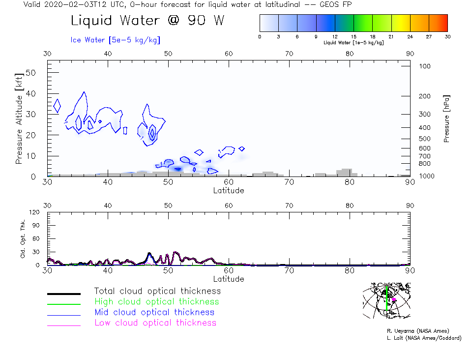 GEOS Forecast Cloud Water Content X-Section (90 W)
