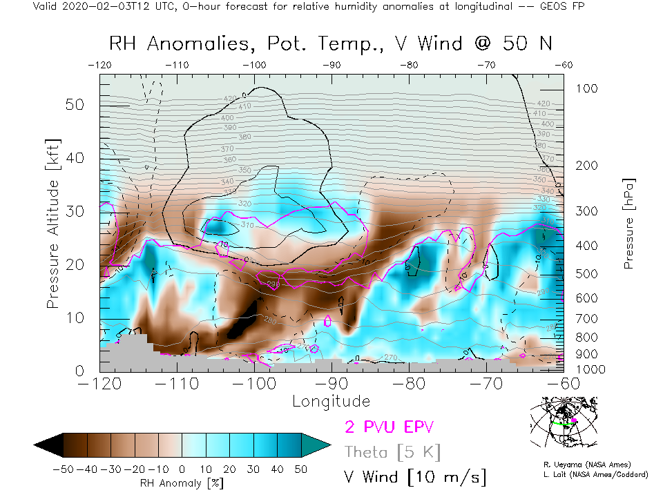GEOS Forecast Rel. Hum. X-Section (50 N)
