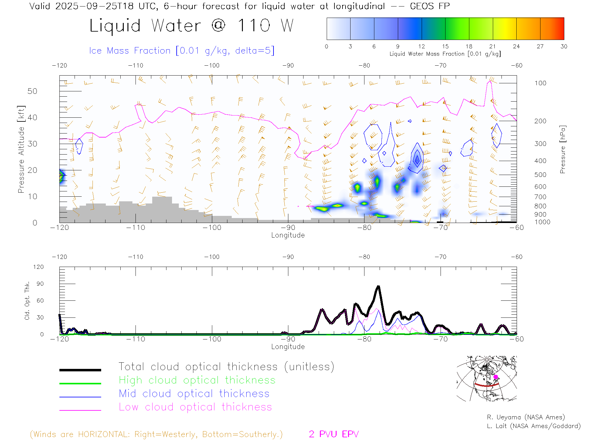 GEOS Forecast Cloud Water Content X-Section (40 N)