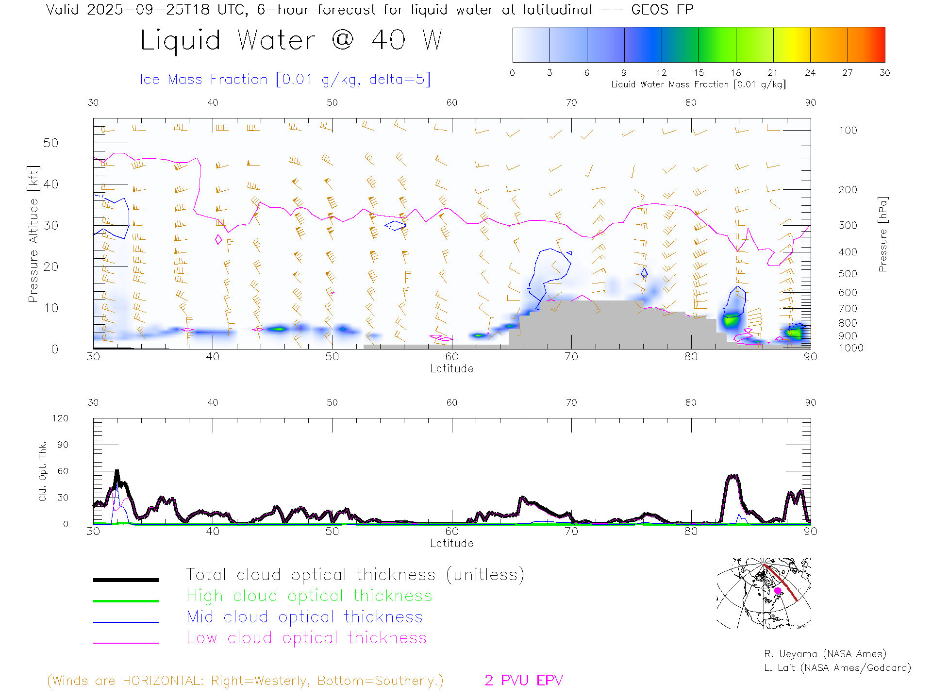 GEOS Forecast Cloud Water Content X-Section (40 W)