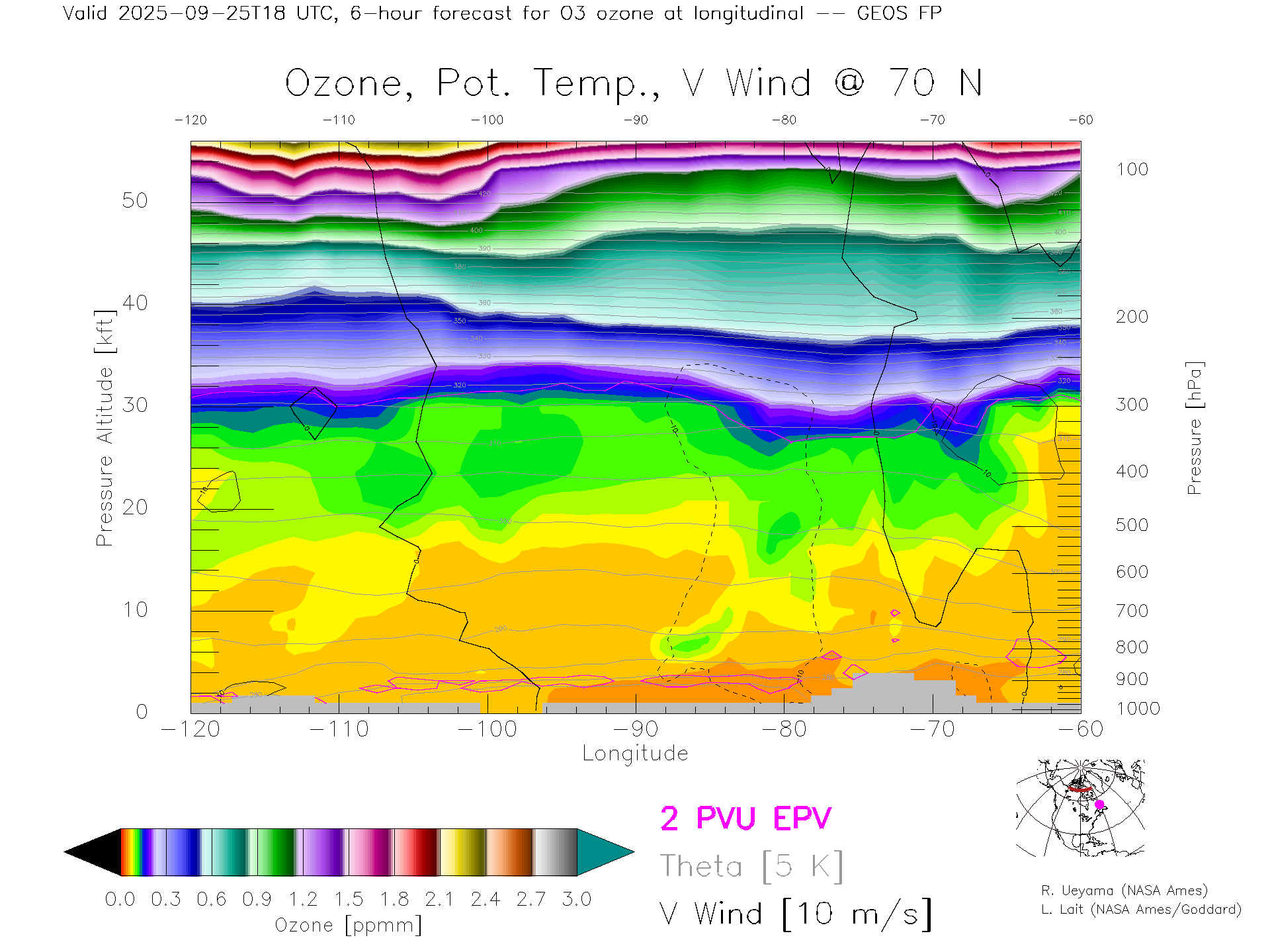 GEOS Forecast Ozone X-Section (70 N)