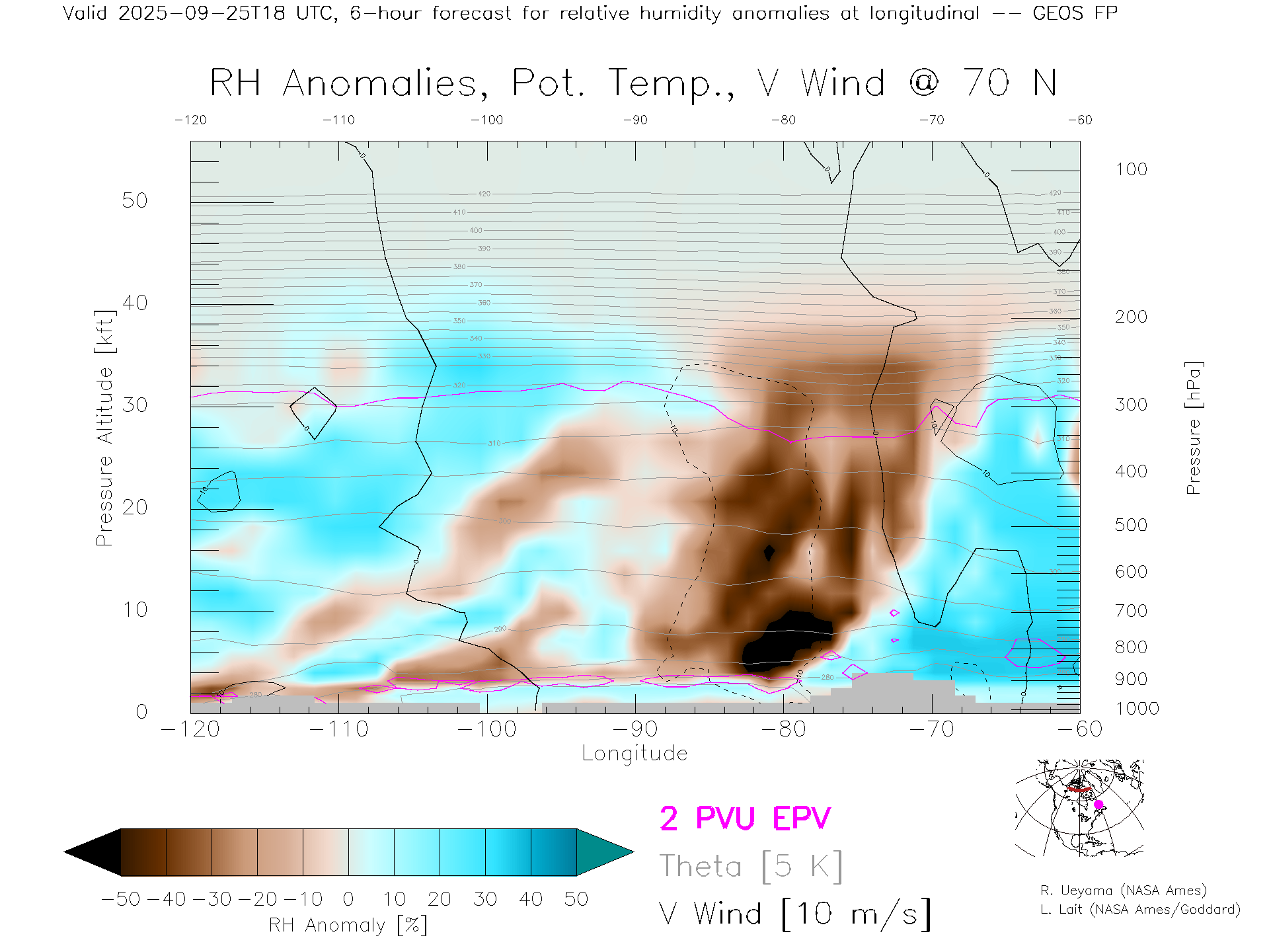 GEOS Forecast Rel. Hum. X-Section (70 N)