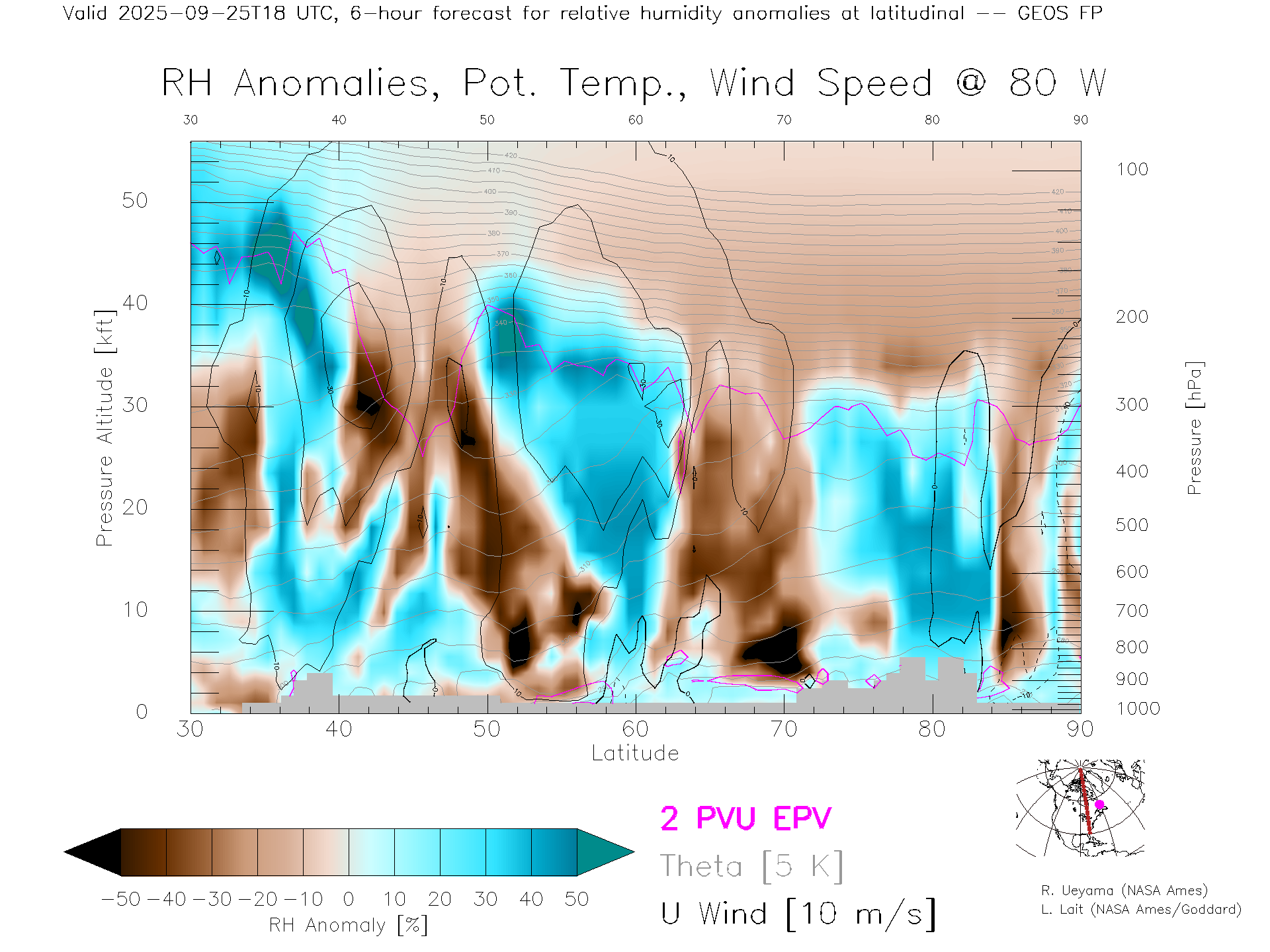 GEOS Forecast Rel. Hum. X-Section (80 W)