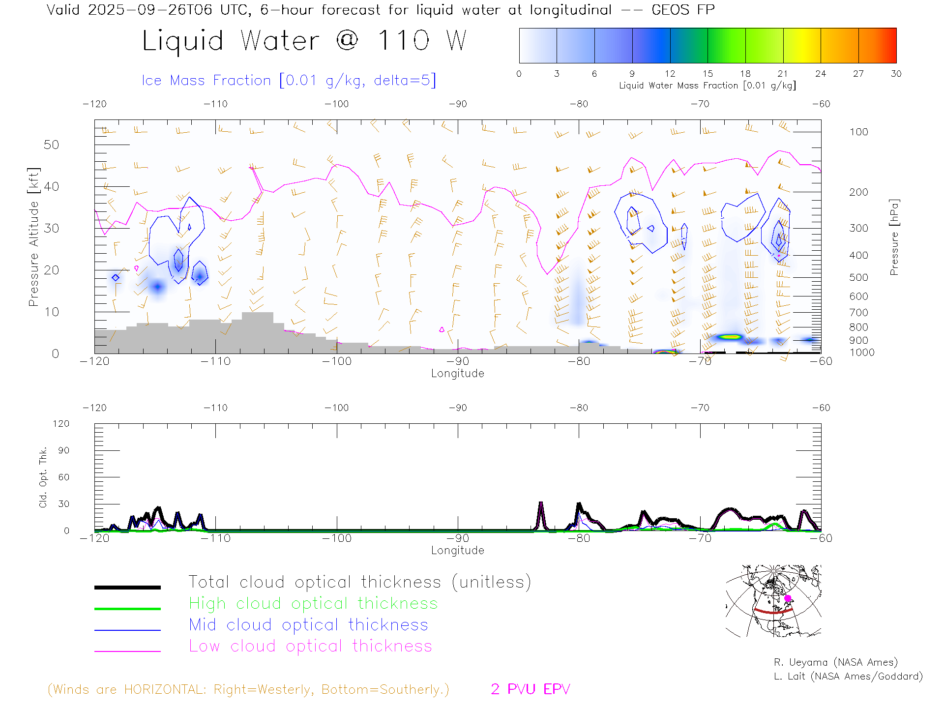 GEOS Forecast Cloud Water Content X-Section (40 N)
