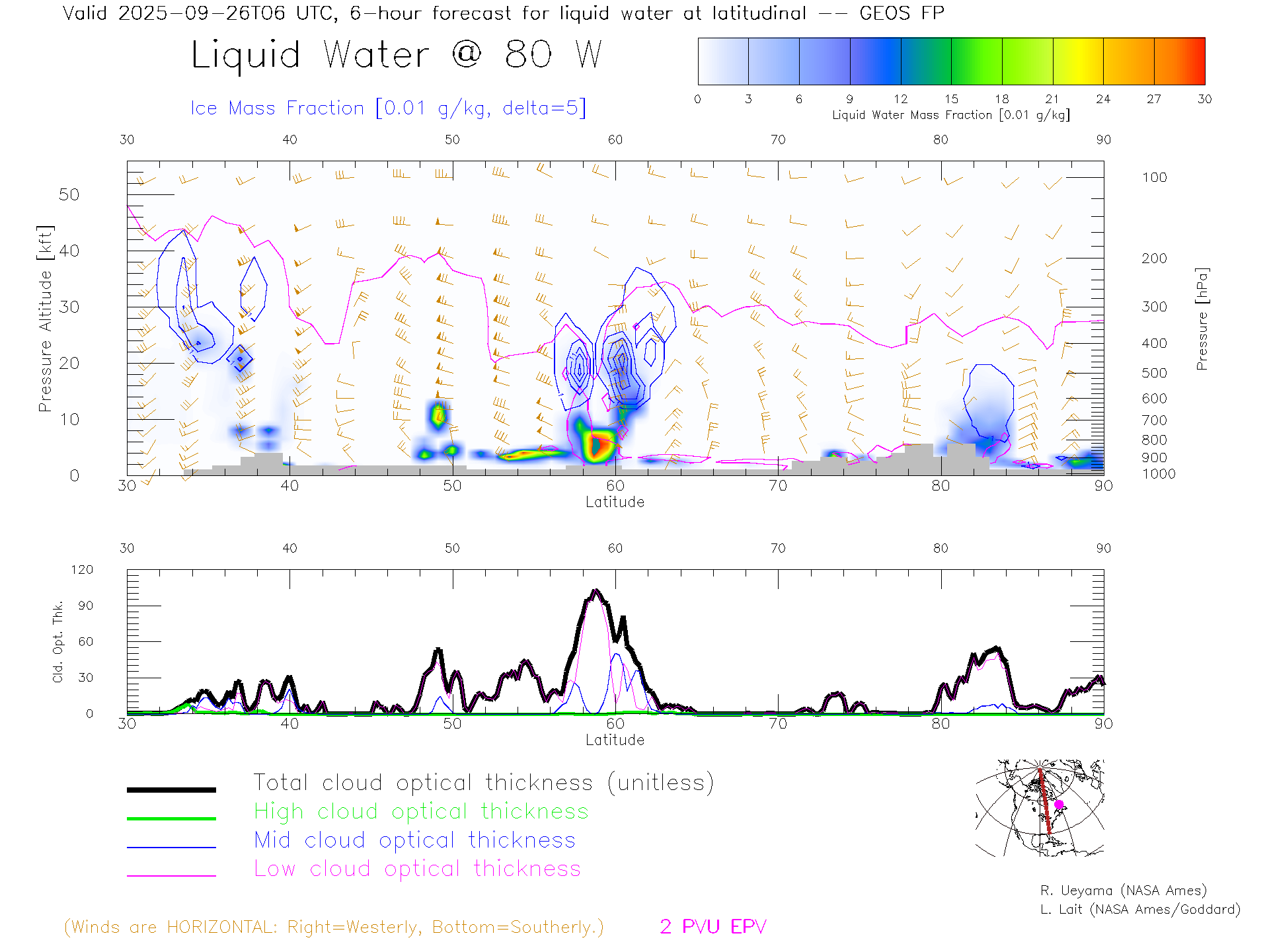 GEOS Forecast Cloud Water Content X-Section (80 W)