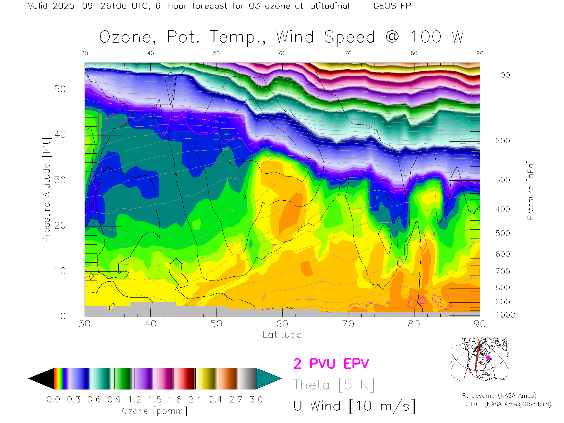 GEOS Forecast Ozone X-Section (100 W)