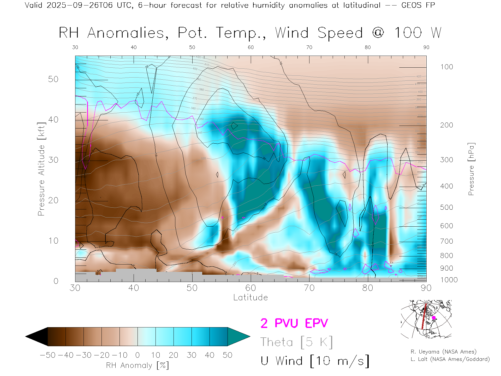 GEOS Forecast Rel. Hum. X-Section (100 W)