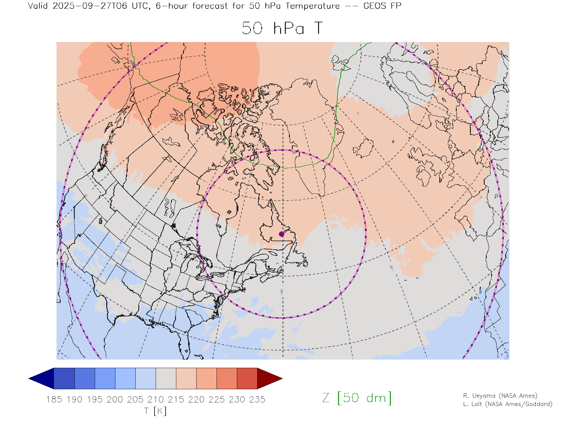 GEOS Forecast 50 hPa Temp.