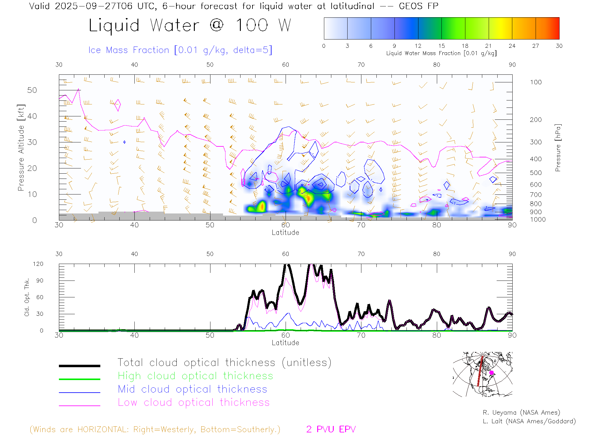 GEOS Forecast Cloud Water Content X-Section (100 W)