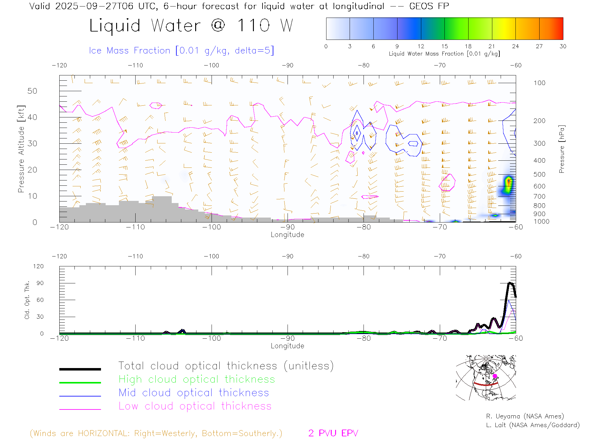 GEOS Forecast Cloud Water Content X-Section (40 N)