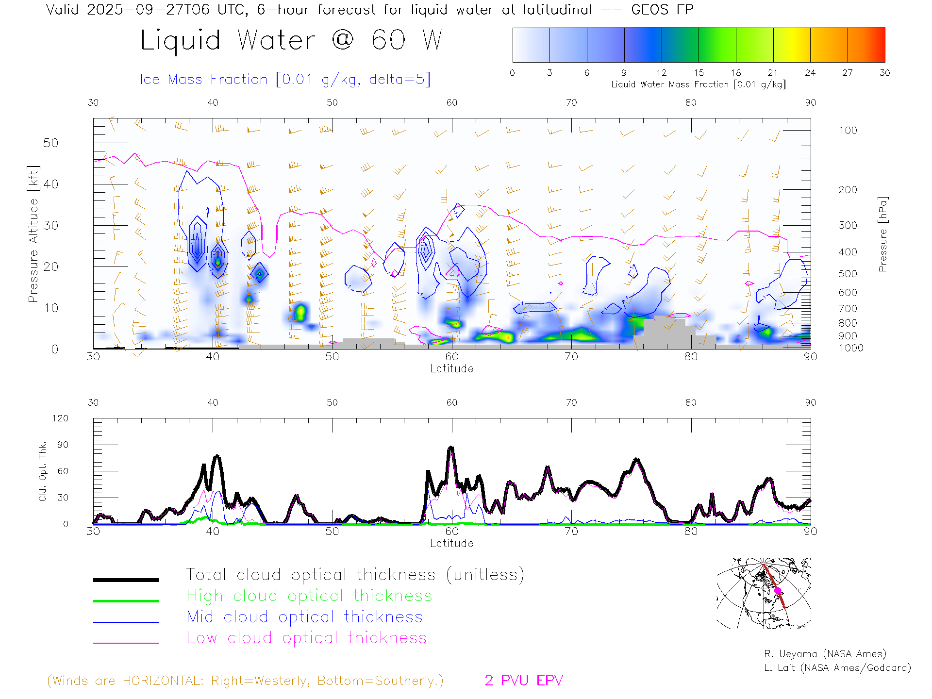GEOS Forecast Cloud Water Content X-Section (60 W)
