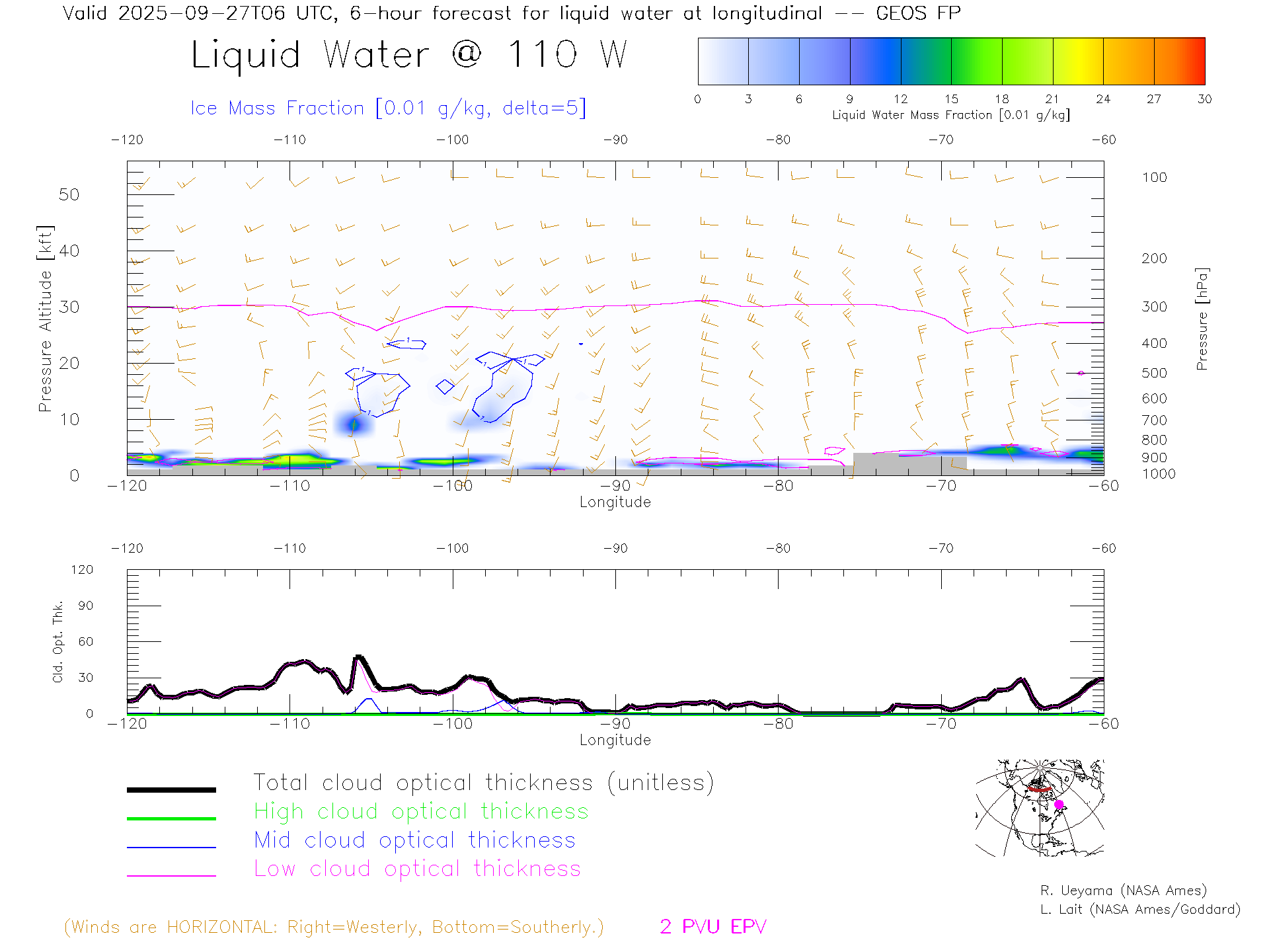 GEOS Forecast Cloud Water Content X-Section (70 N)