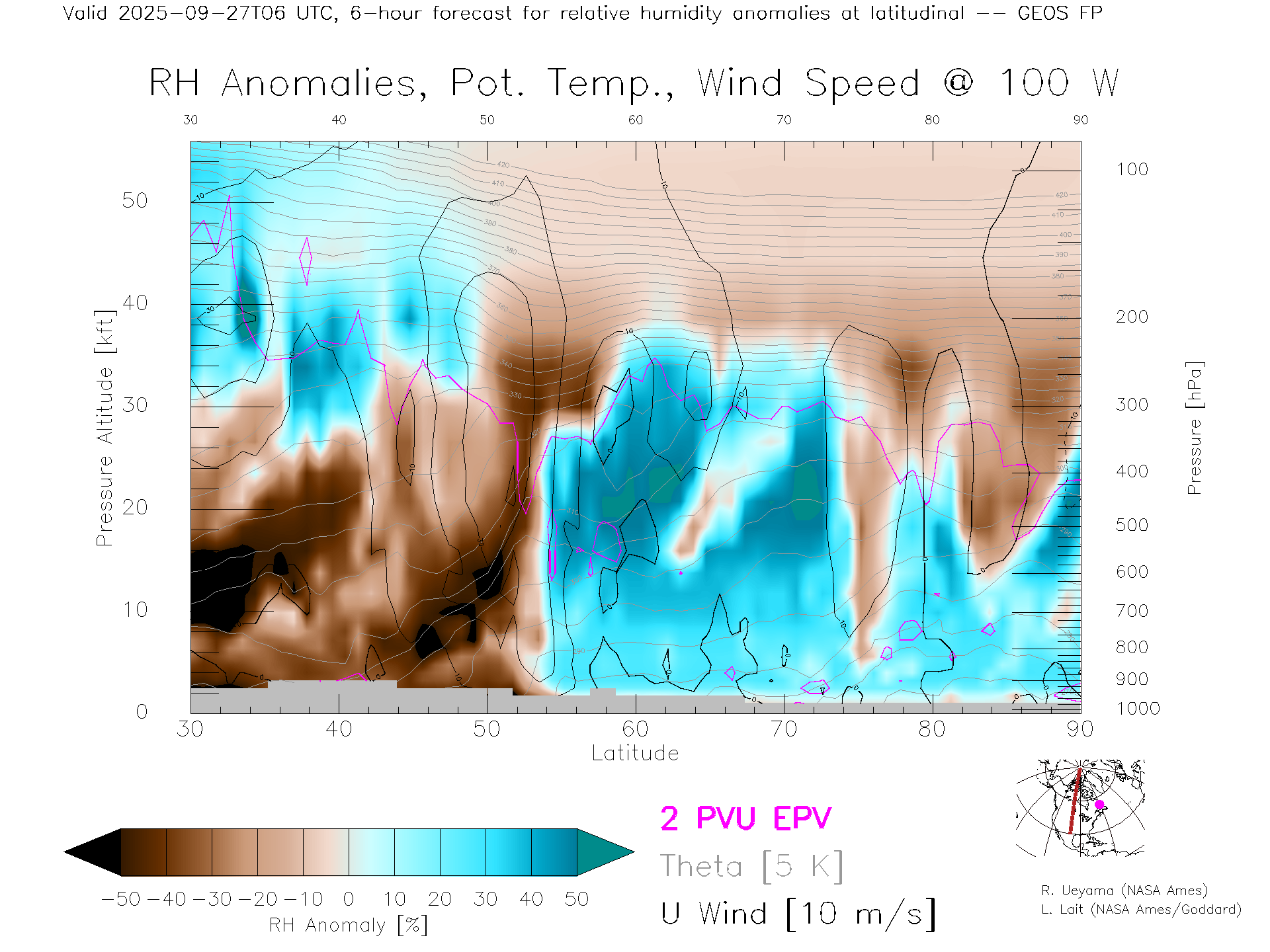 GEOS Forecast Rel. Hum. X-Section (100 W)