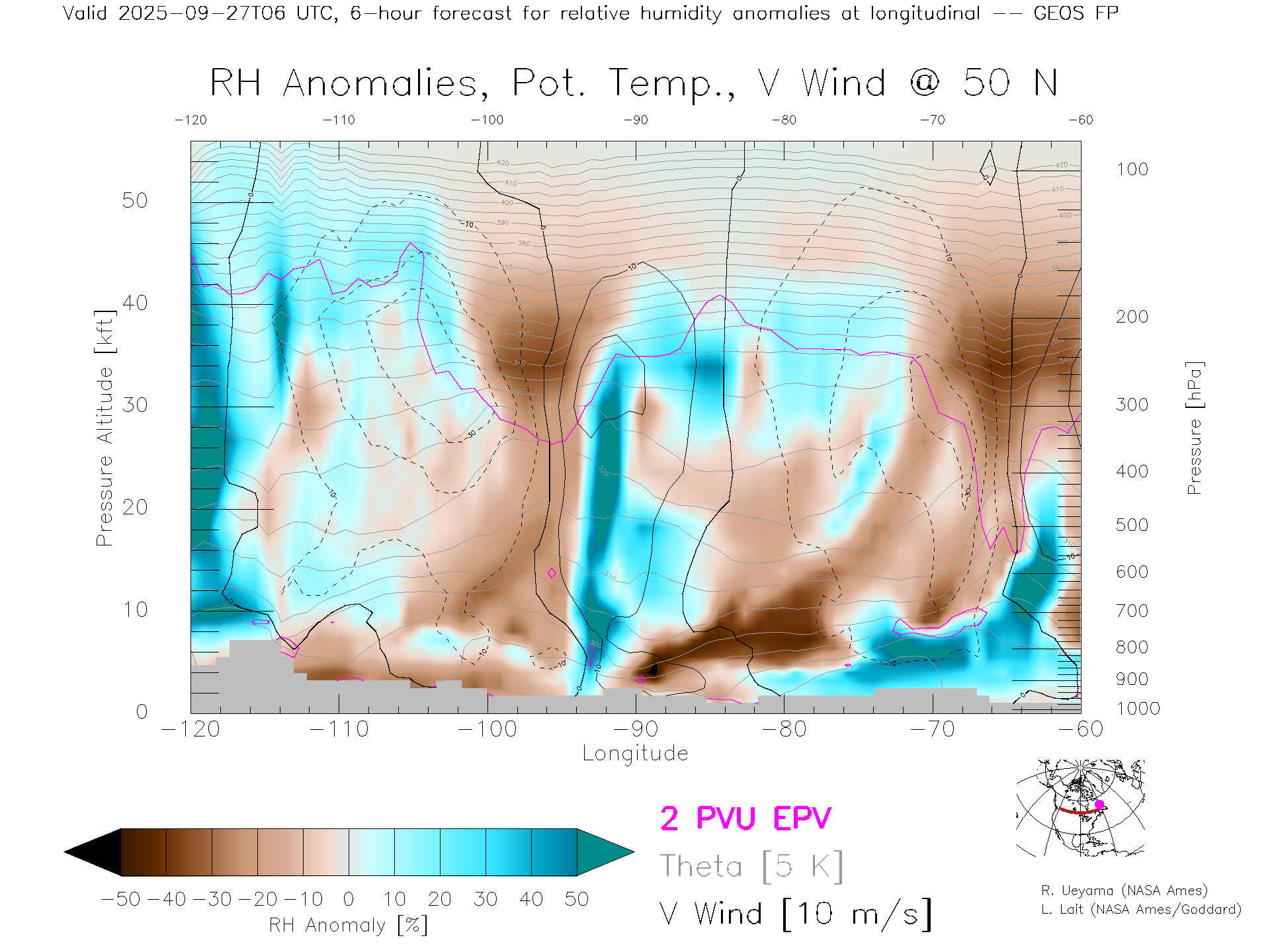 GEOS Forecast Rel. Hum. X-Section (50 N)