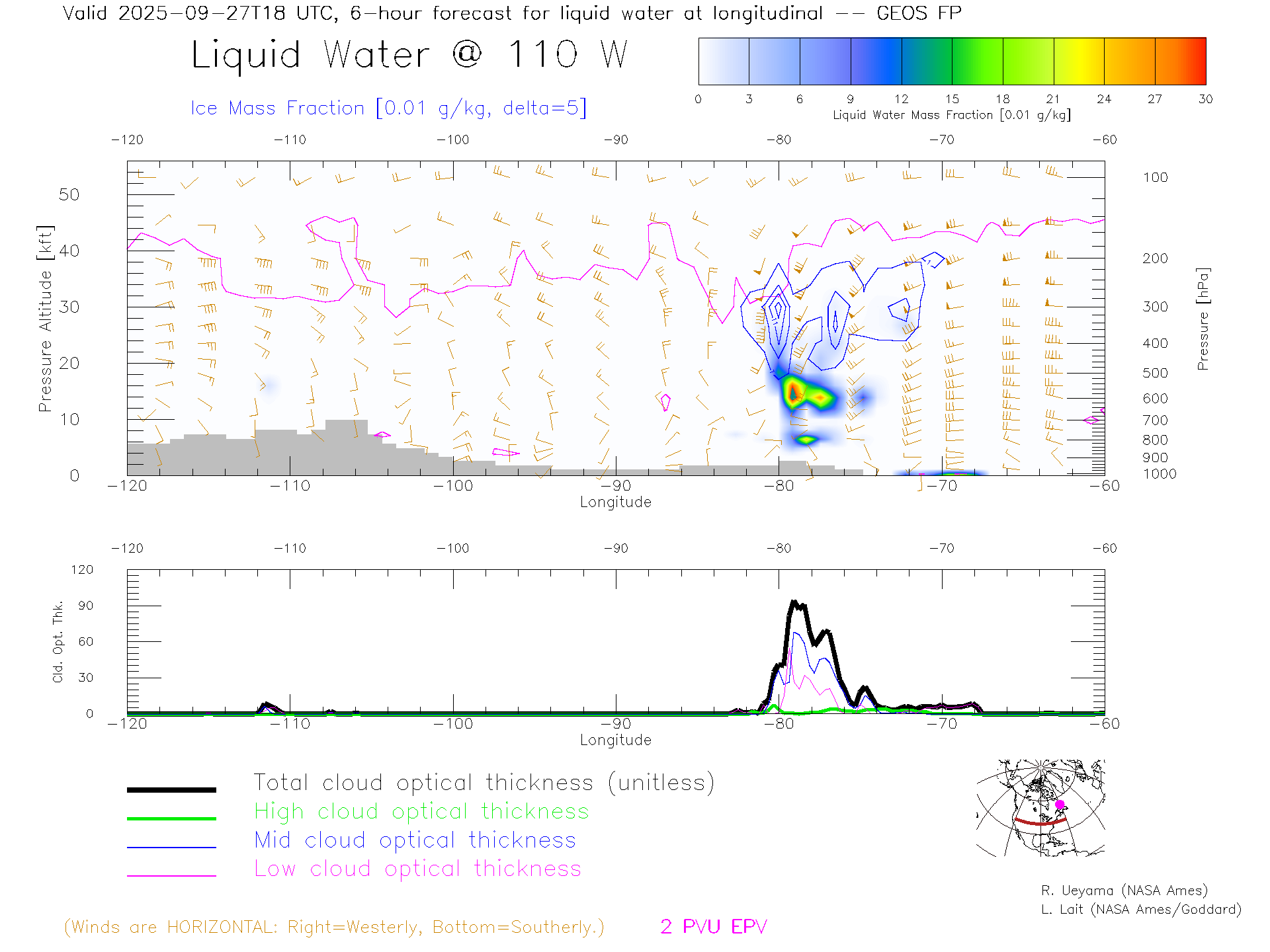 GEOS Forecast Cloud Water Content X-Section (40 N)
