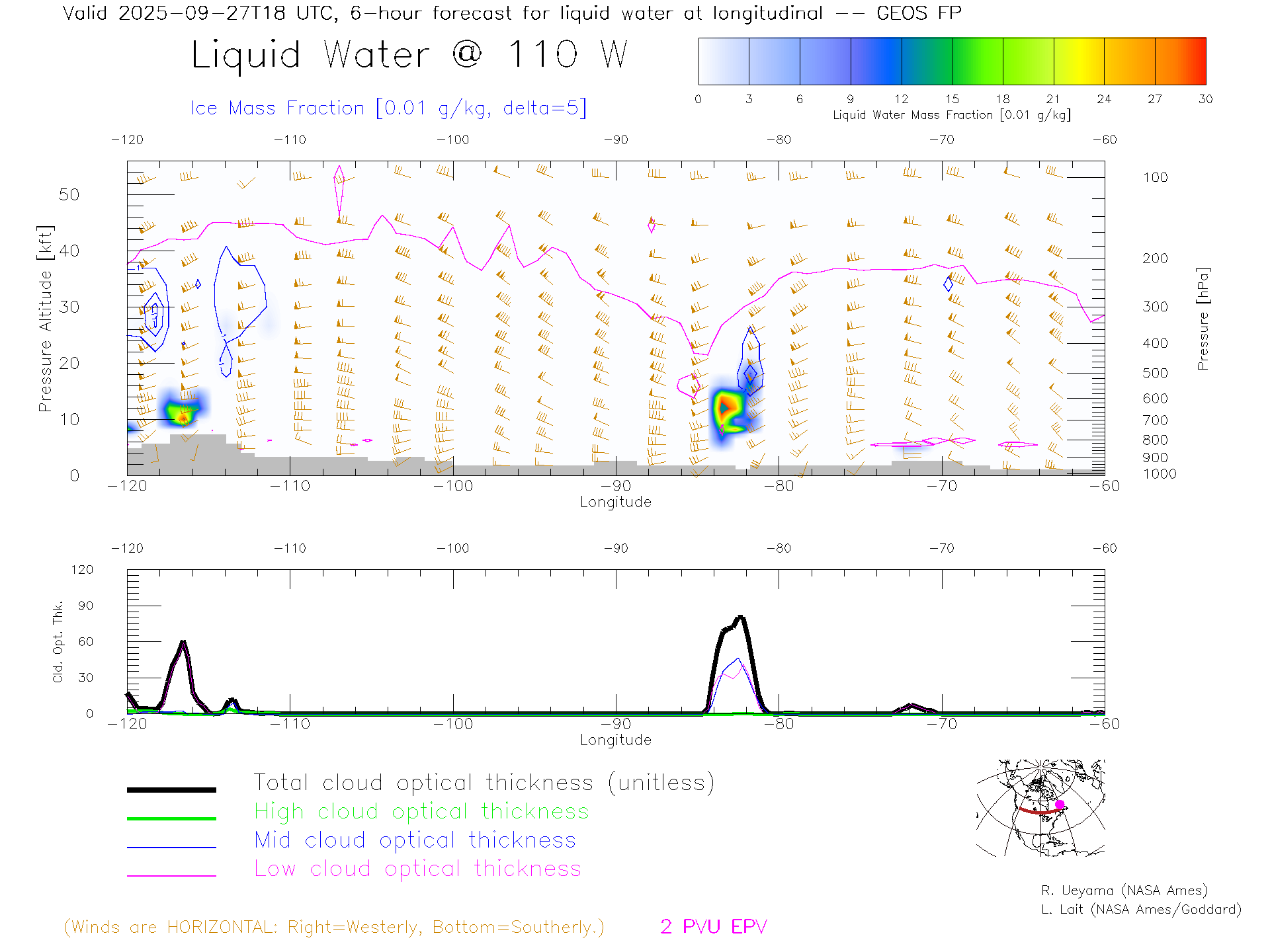 GEOS Forecast Cloud Water Content X-Section (50 N)