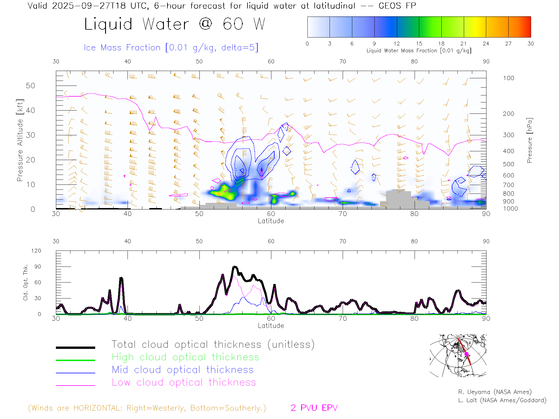 GEOS Forecast Cloud Water Content X-Section (60 W)