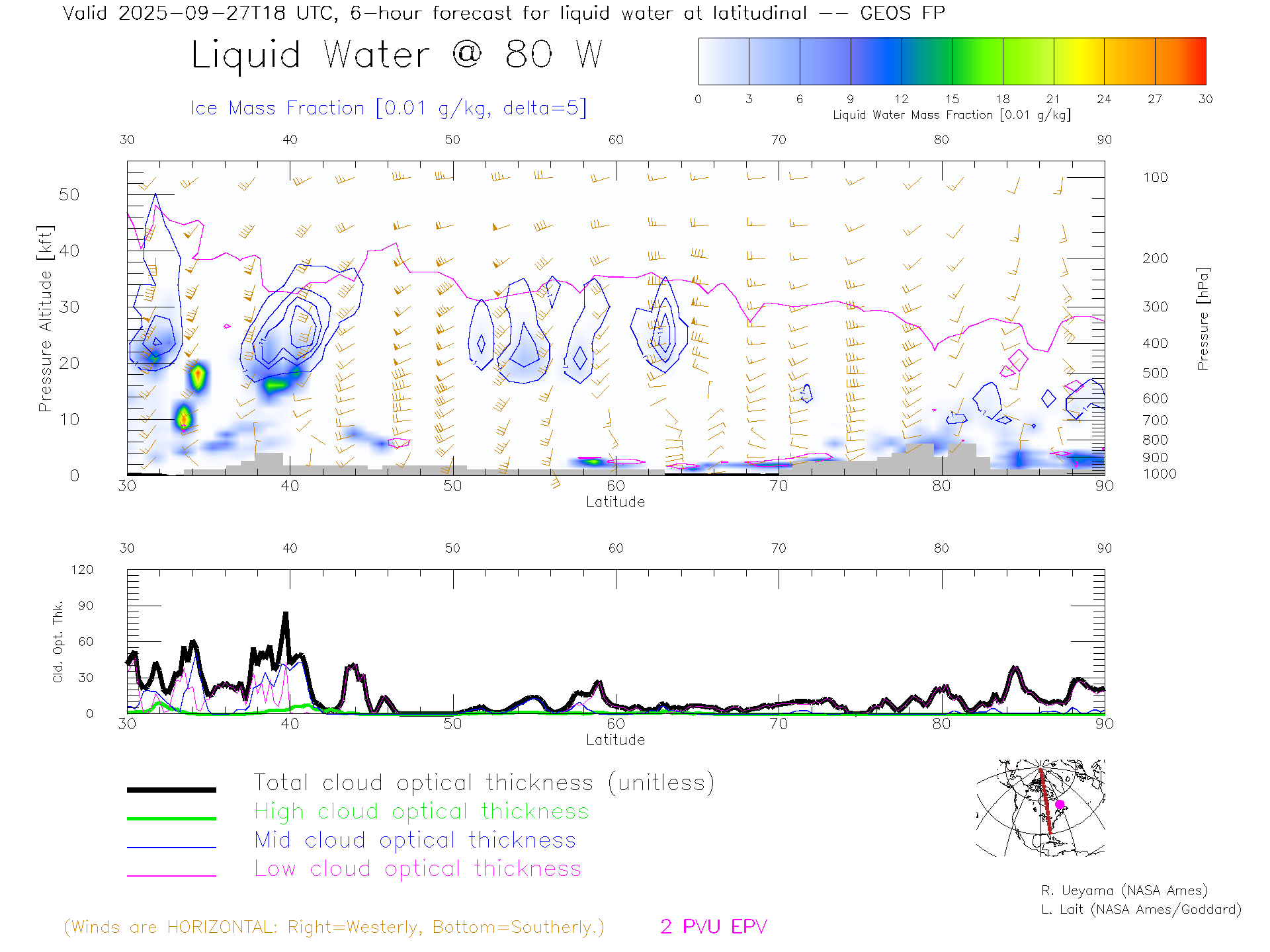 GEOS Forecast Cloud Water Content X-Section (80 W)
