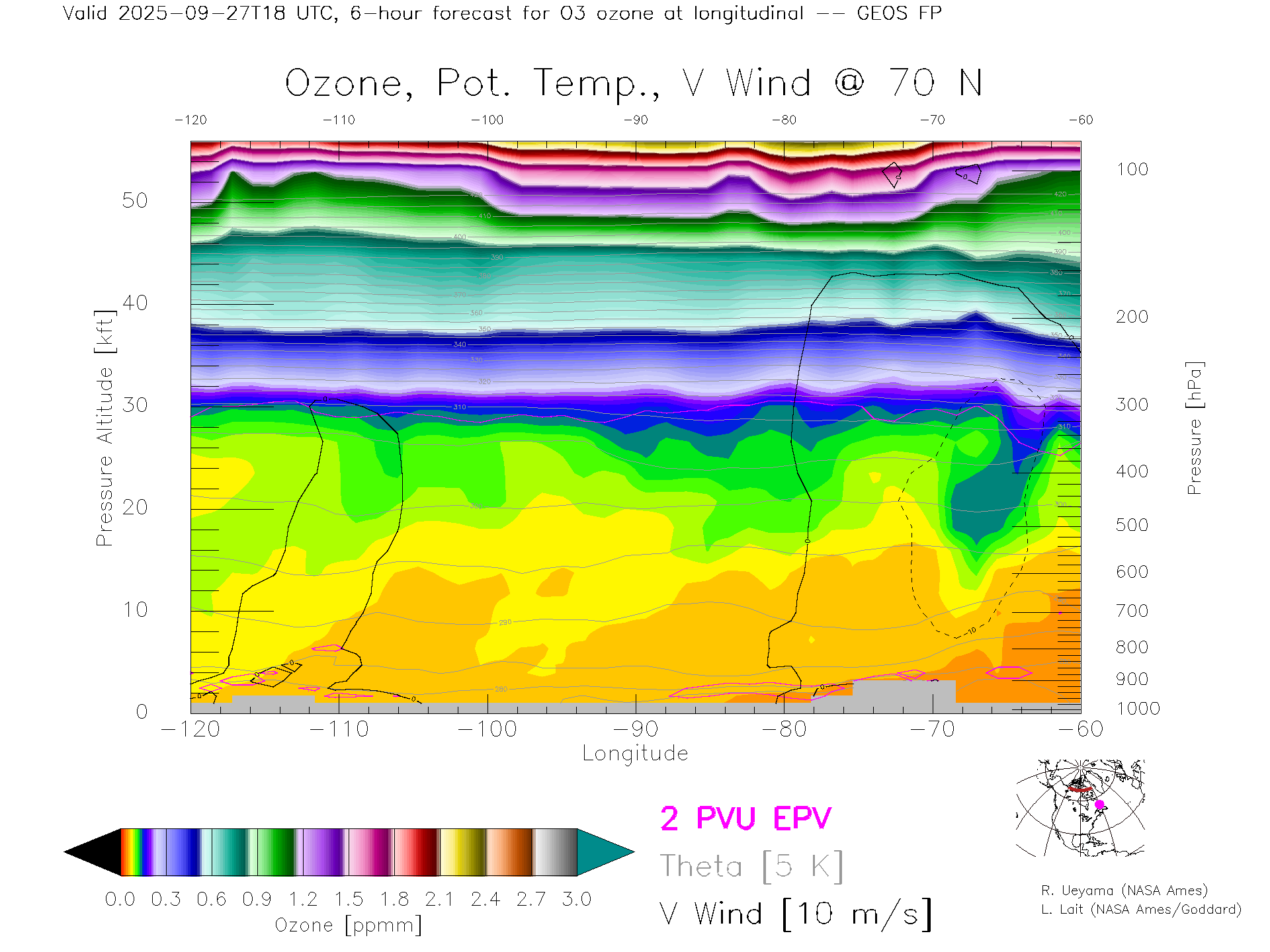 GEOS Forecast Ozone X-Section (70 N)