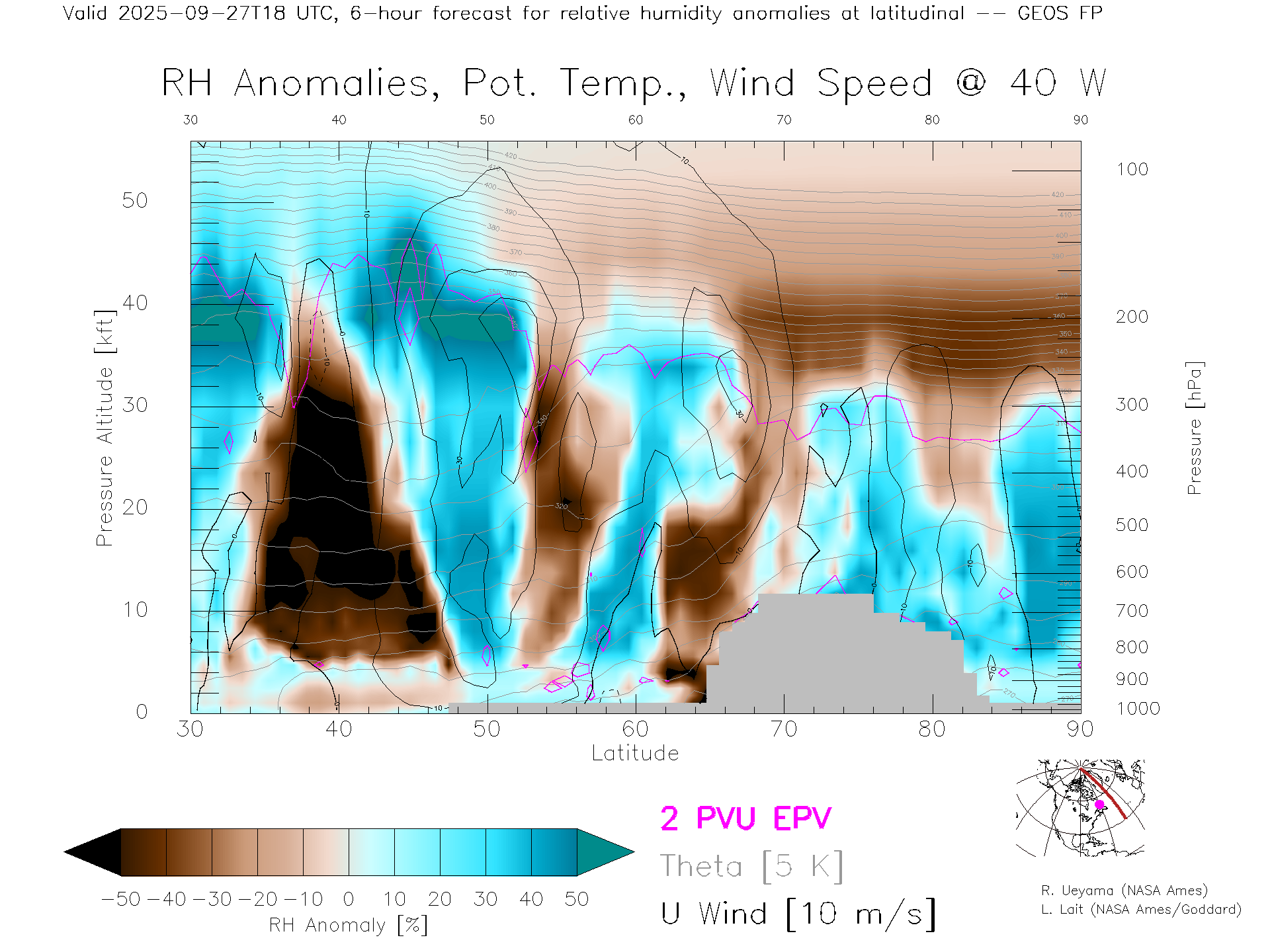 GEOS Forecast Rel. Hum. X-Section (40 W)
