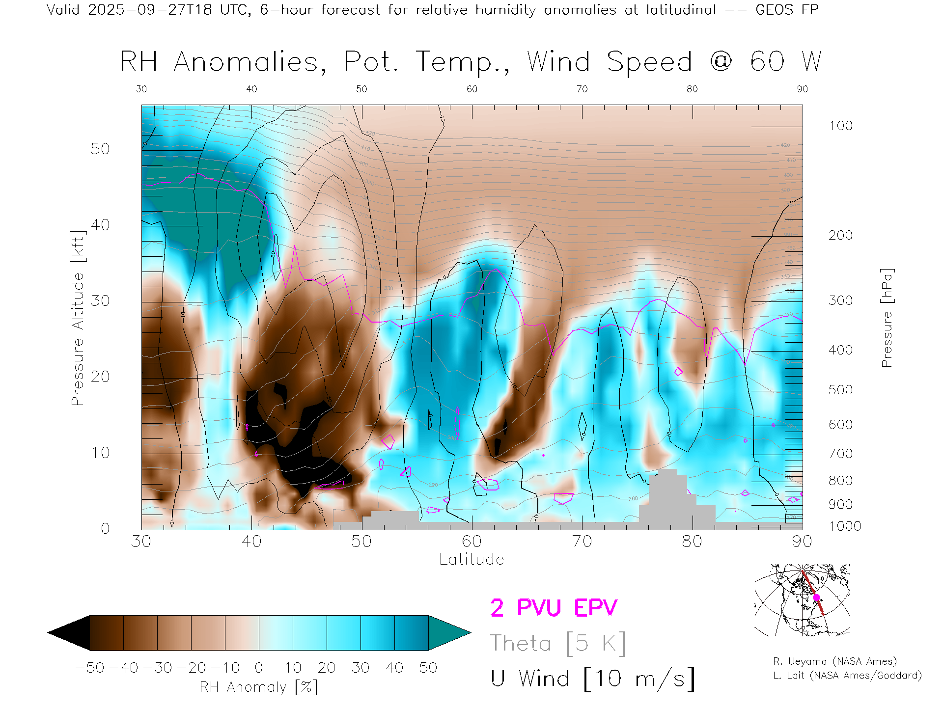 GEOS Forecast Rel. Hum. X-Section (60 W)