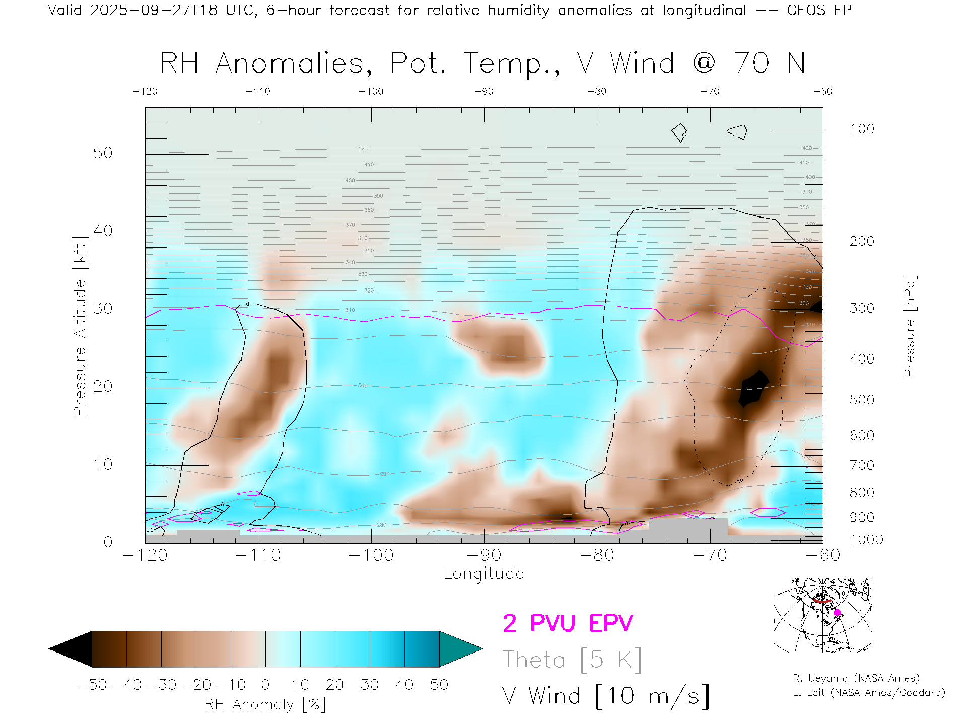 GEOS Forecast Rel. Hum. X-Section (70 N)