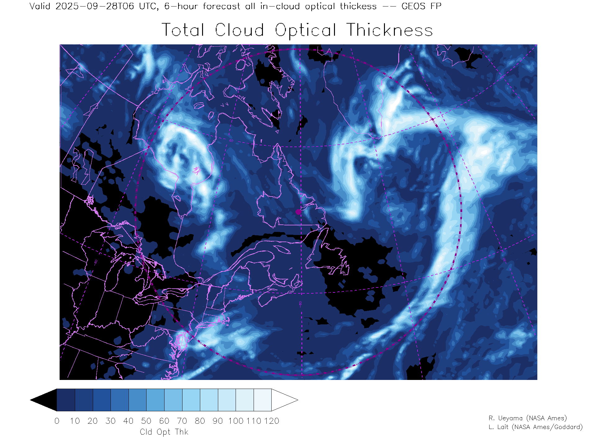 GEOS Forecast Total Cloud Optical thickness