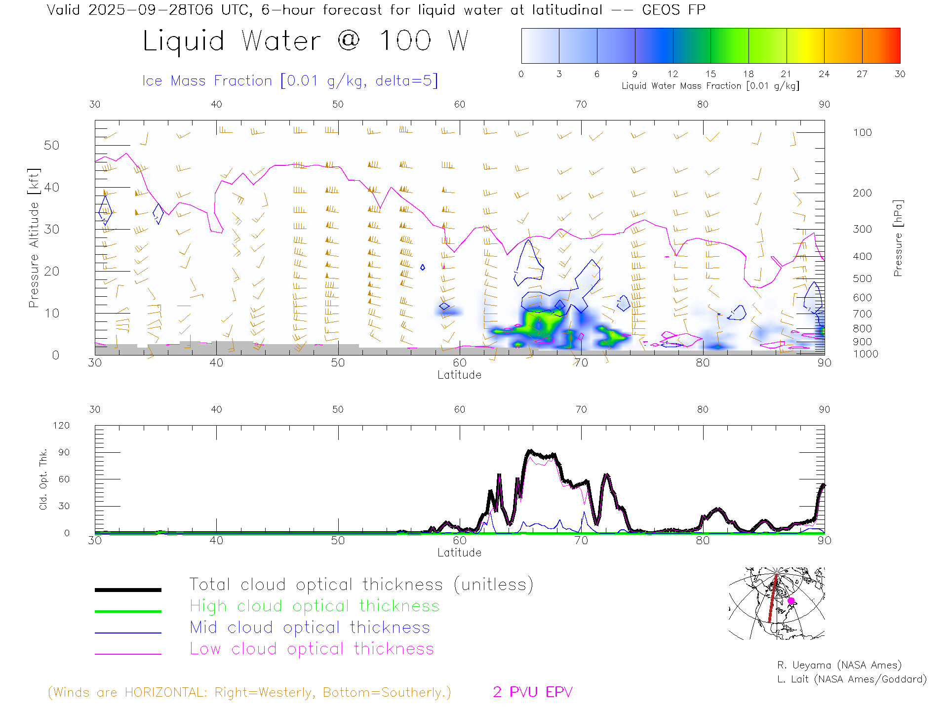 GEOS Forecast Cloud Water Content X-Section (100 W)