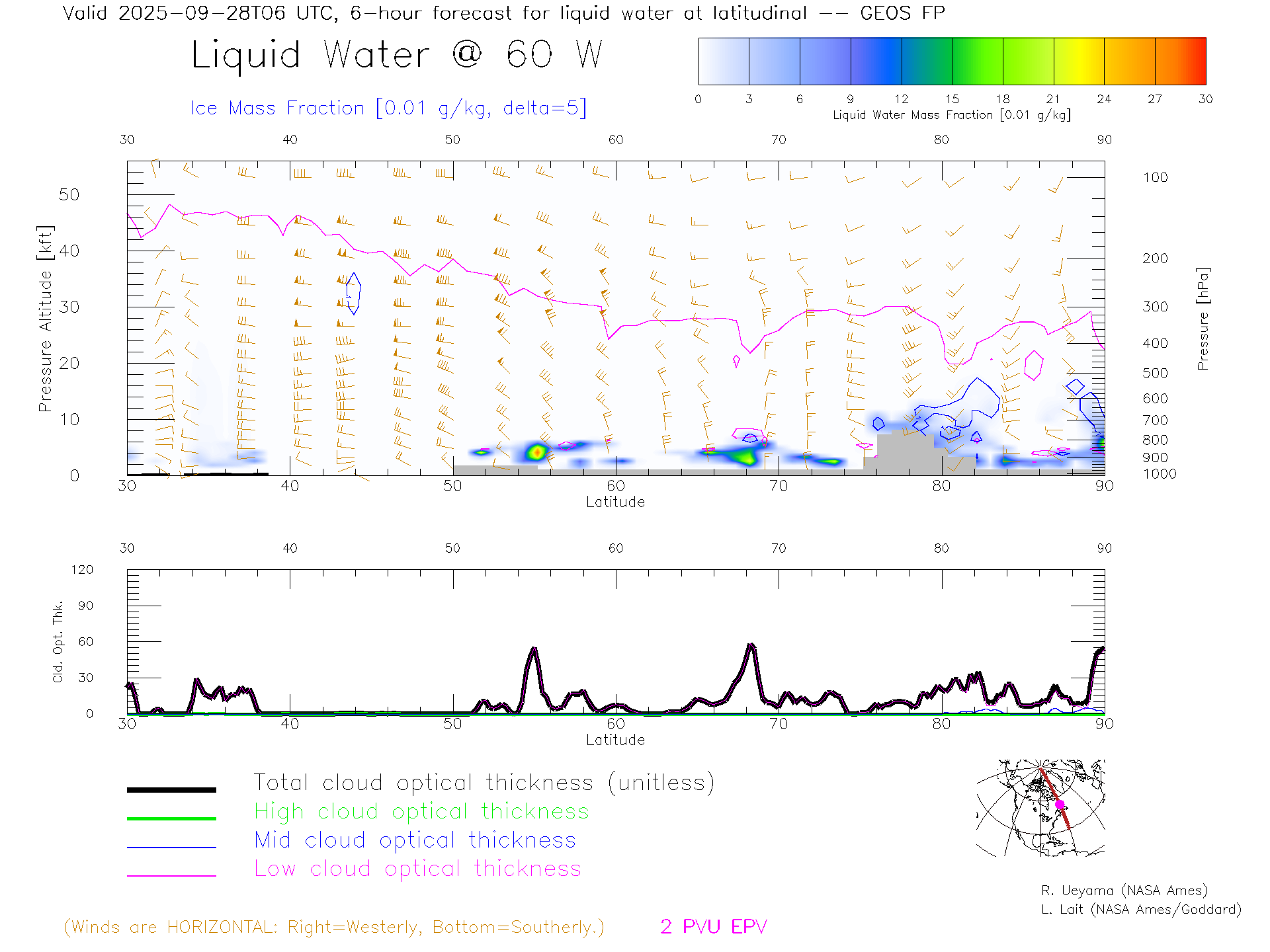 GEOS Forecast Cloud Water Content X-Section (60 W)