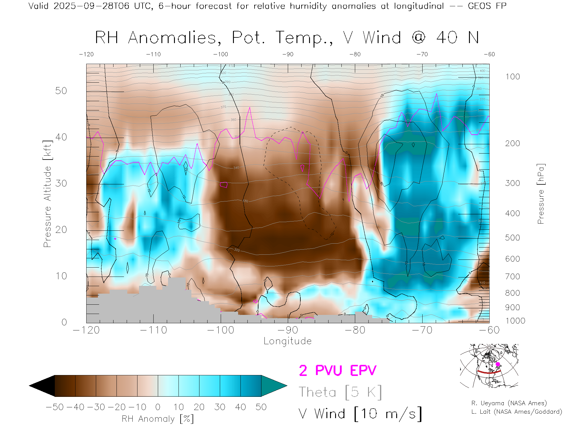 GEOS Forecast Rel. Hum. X-Section (40 N)