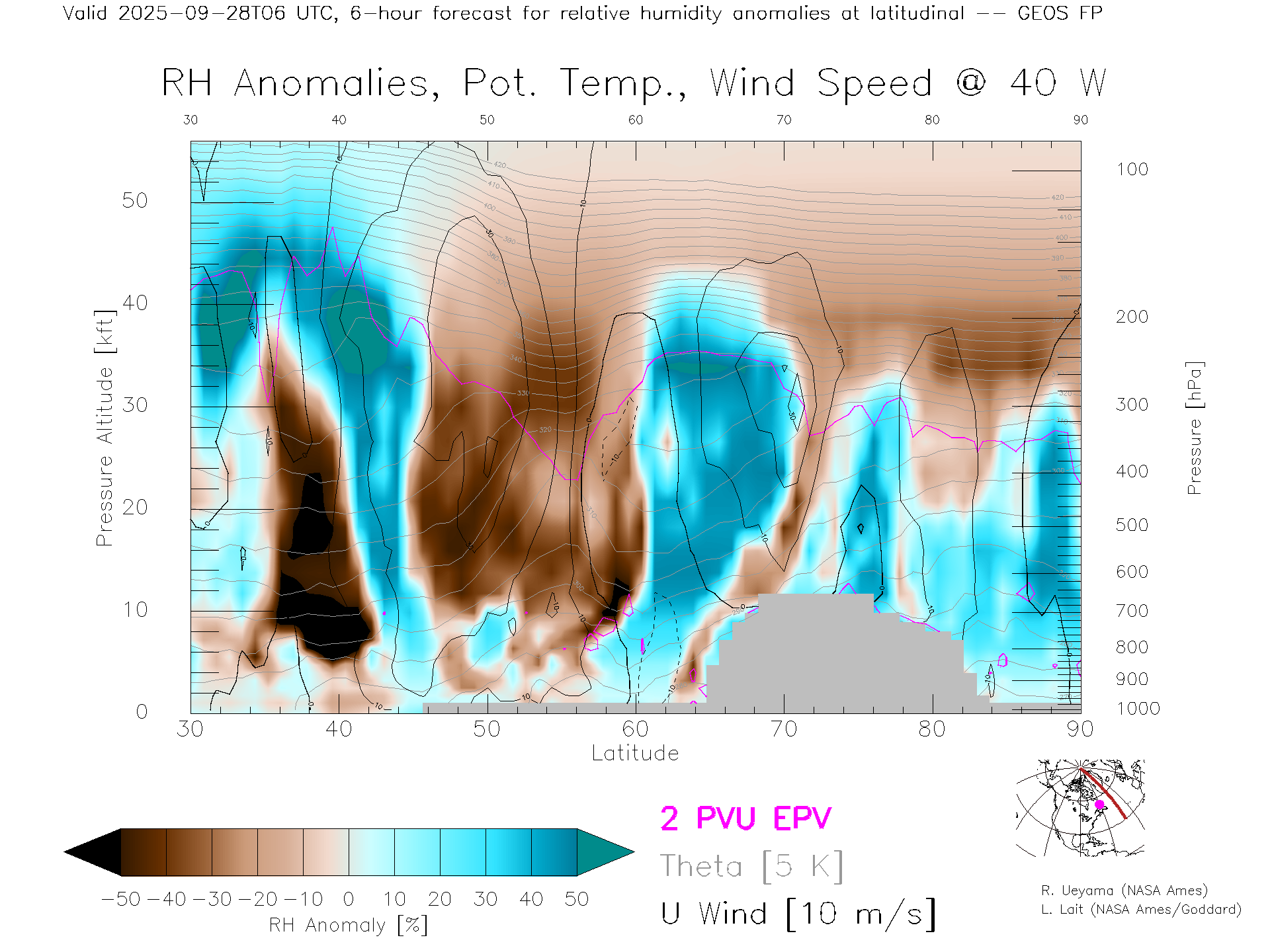 GEOS Forecast Rel. Hum. X-Section (40 W)