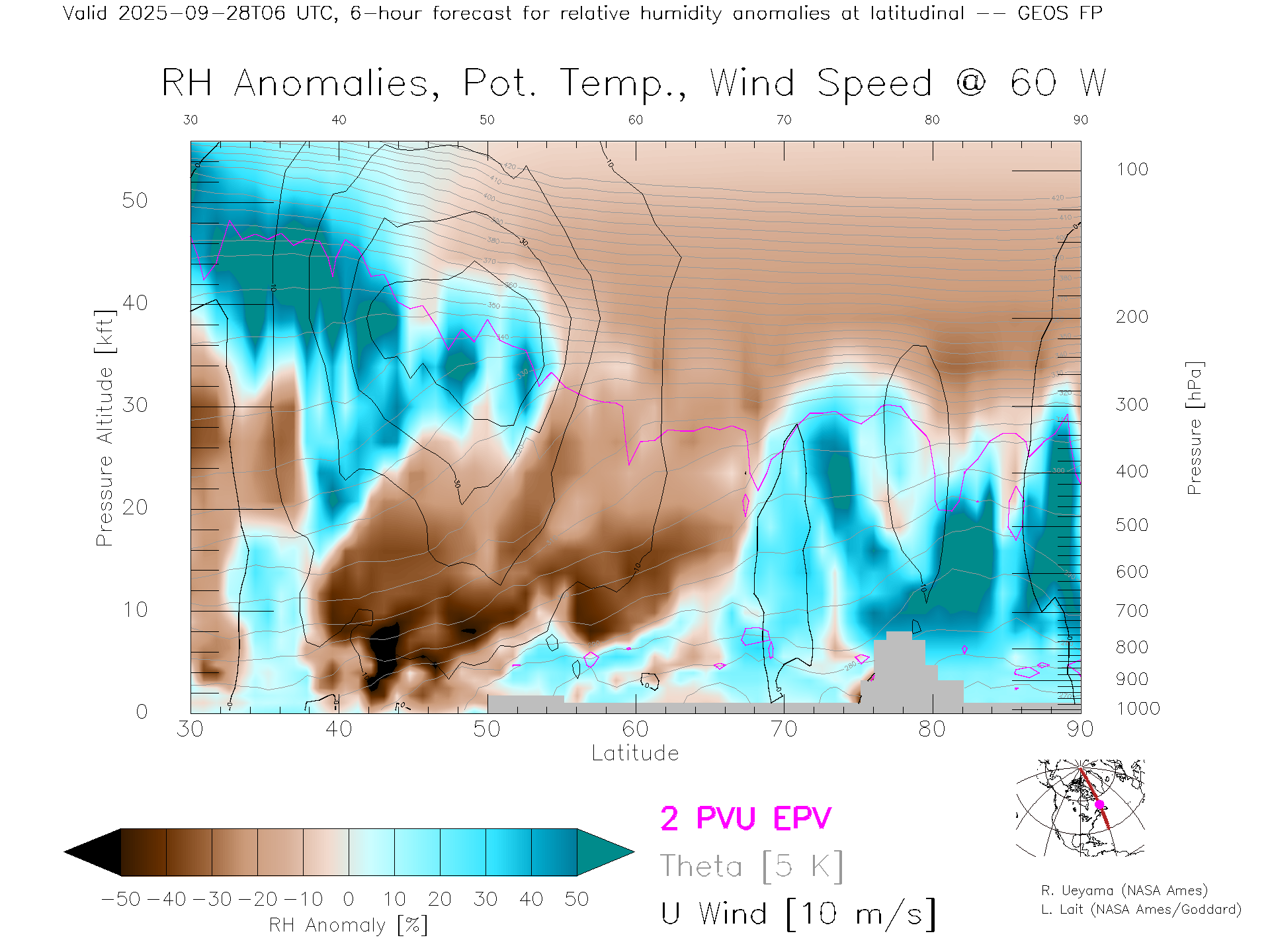 GEOS Forecast Rel. Hum. X-Section (60 W)