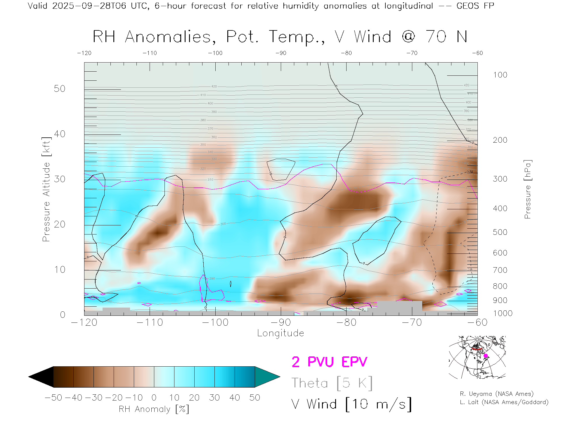 GEOS Forecast Rel. Hum. X-Section (70 N)