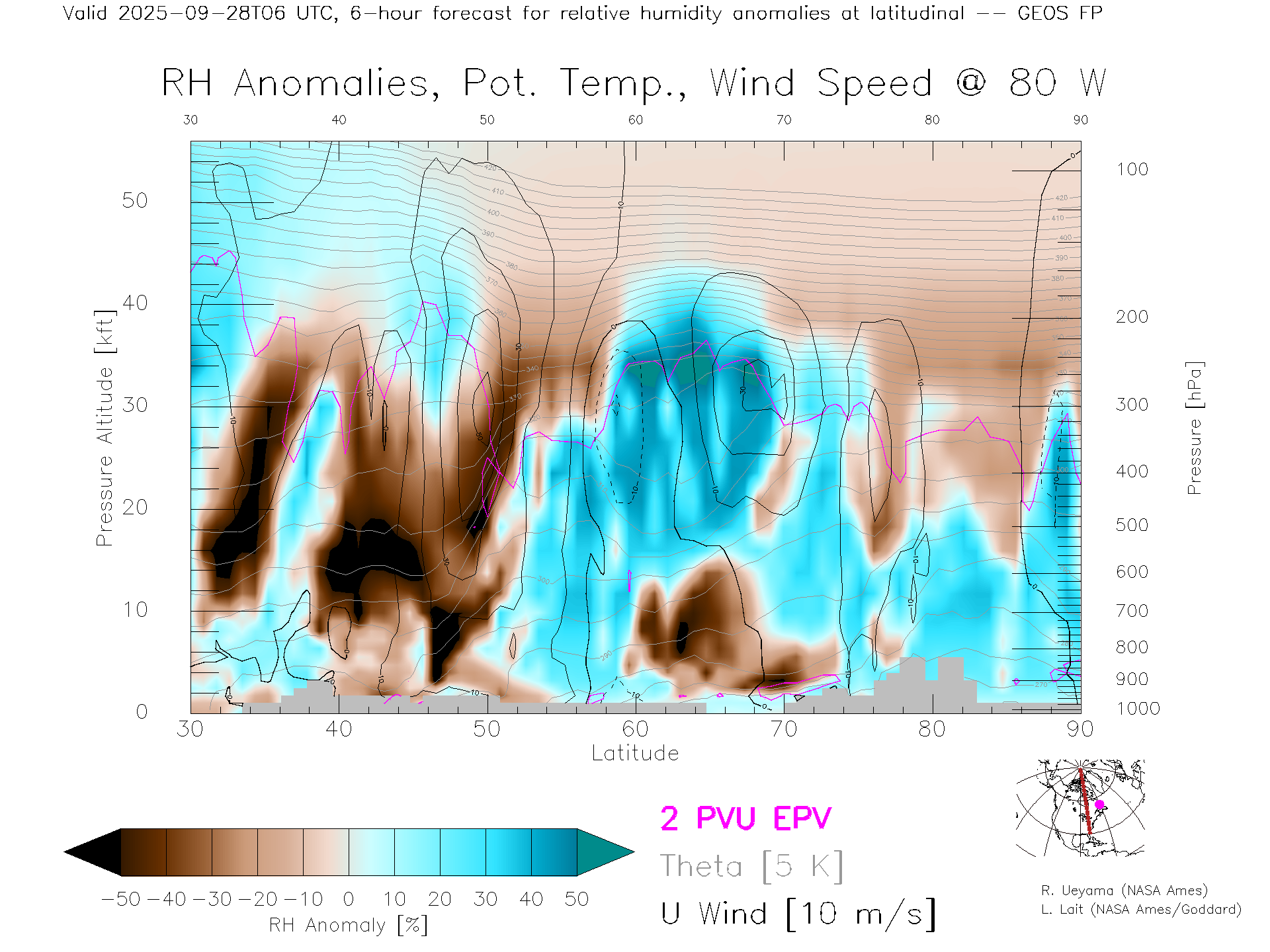 GEOS Forecast Rel. Hum. X-Section (80 W)